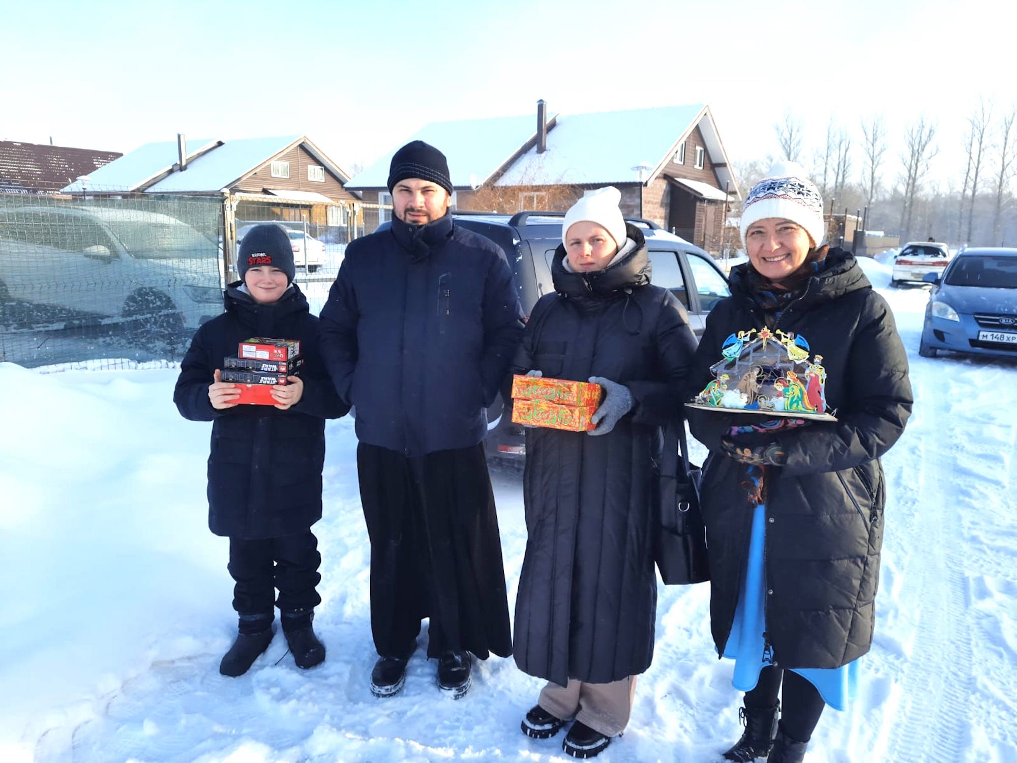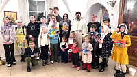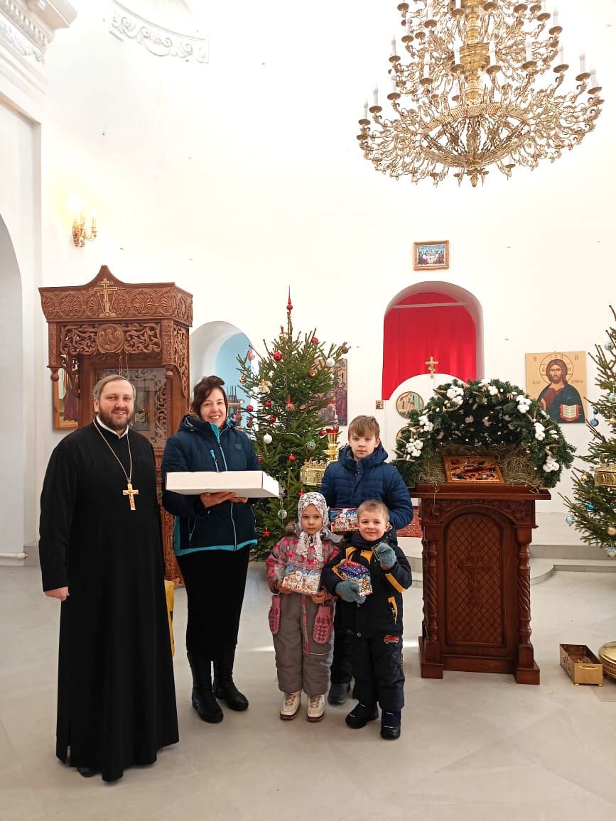 7 января настоятель Успенского храма села Андреевское иерей Павел Пасичнык вручил юным прихожанам сладкие подарки, а также преподнес в подарок продуктовый набор многодетной семье.