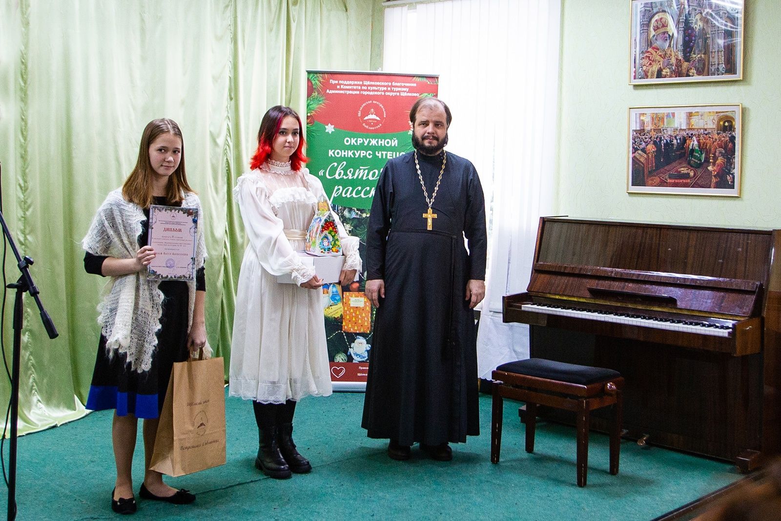 13 января в конференц-зале Щёлковского благочиния состоялась торжественная церемония награждения победителей V окружного конкурса чтецов «Святочный рассказ». На открытии мероприятия прозвучала рождественская песня в исполнении струнного ансамбля «Глиэрика» детской школы искусств имени Юрия Розума. Начальник отдела по сохранению культурного наследия и туризма Комитета по культуре и туризму администрации городского округа Щёлково Ирина Валентиновна Коврижных поздравила участников конкурса и вручила награды победителям в номинации «Индивидуальное выступление» (возрастная категория 8–11 лет). Заслуженный работник культуры Московской области Светлана Сергеевна Козанкова вручила победителям грамоты и подарки в номинации «Индивидуальное выступление» (возрастная категория 12–14 лет). Клирик Троицкого собора города Щёлково священник Евгений Трушин поздравил участников и гостей конкурса с Рождеством Христовым, после чего вручил дипломы и подарки победителям в номинации «Индивидуальное выступление» (возрастная категория 15–18 лет). Победителей в номинации «Индивидуальное выступление» (возрастная категория старше 18 лет) поздравил актёр театра и кино Андрей Витальевич Трубин. Директор Щёлковской центральной библиотеки Елена Владимировна Ильенко вручила награды победителям в номинации «Семейное выступление». В завершение мероприятия состоялась премьера песни, посвящённой конкурсу чтецов «Святочный рассказ» в исполнении хора «Глиссандо» детской школы искусств имени Юрия Розума. Автор музыки – клирик Троицкого собора города Щёлково, член Союза композиторов России и Совета композиторов и музыкальных деятелей народов Евразии диакон Роман Галиев.