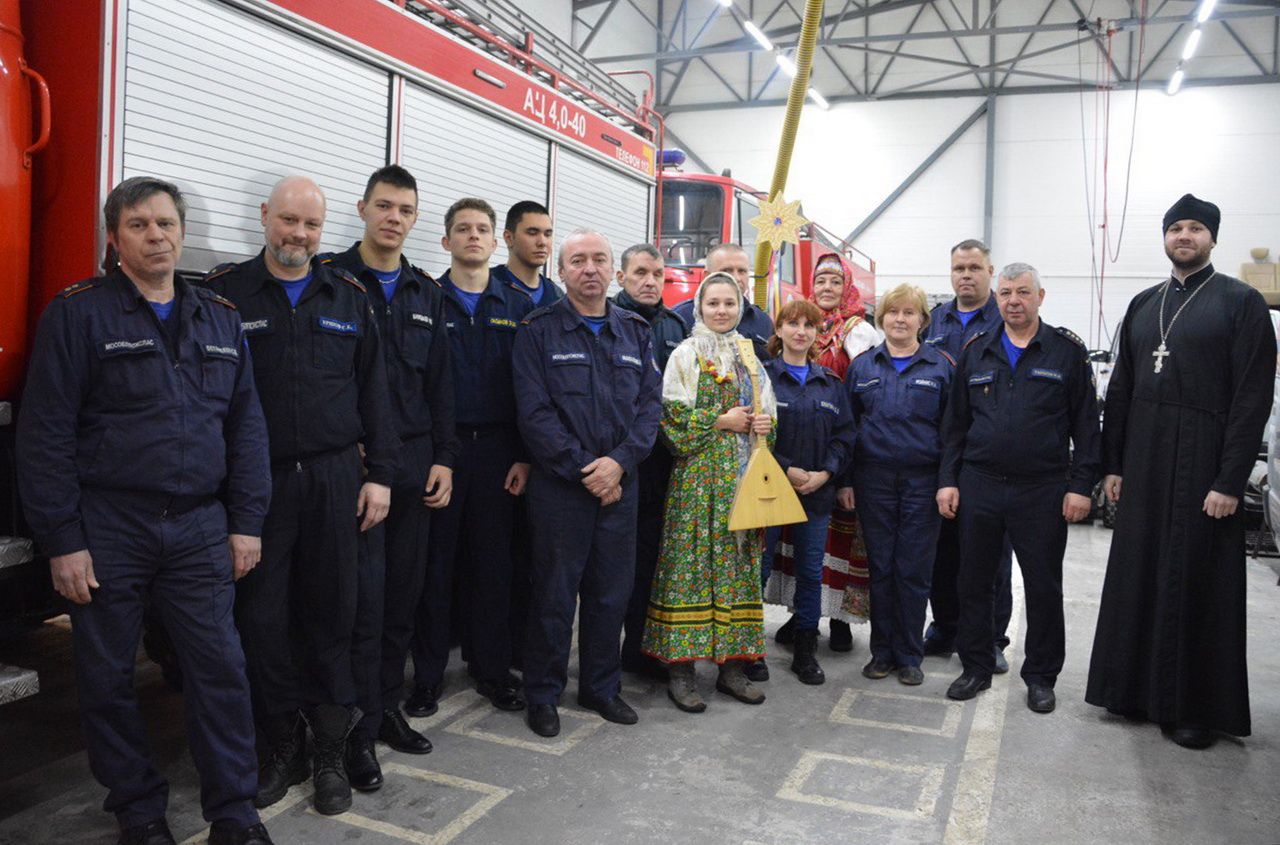 19 января клирик Никольского храма иерей Георгий Болгарский встретился с личным составом пожарно-спасательной части № 315 ТУ № 5 ГКУ МО Мособлпожспас. Отец Георгий поздравил спасателей с праздником Крещения Господня, а фольклорный ансамбль Никольского храма спел крещенские песнопения и народные песни.