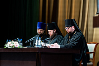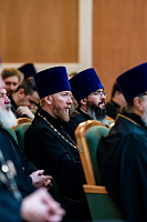 В начале заседания к его участникам обратился архиепископ Подольский и Люберецкий Аксий и передал собравшимся благословение Святейшего Патриарха Московского и всея Руси Кирилла и его молитвенное пожелание помощи Божией в служении Церкви Христовой.
