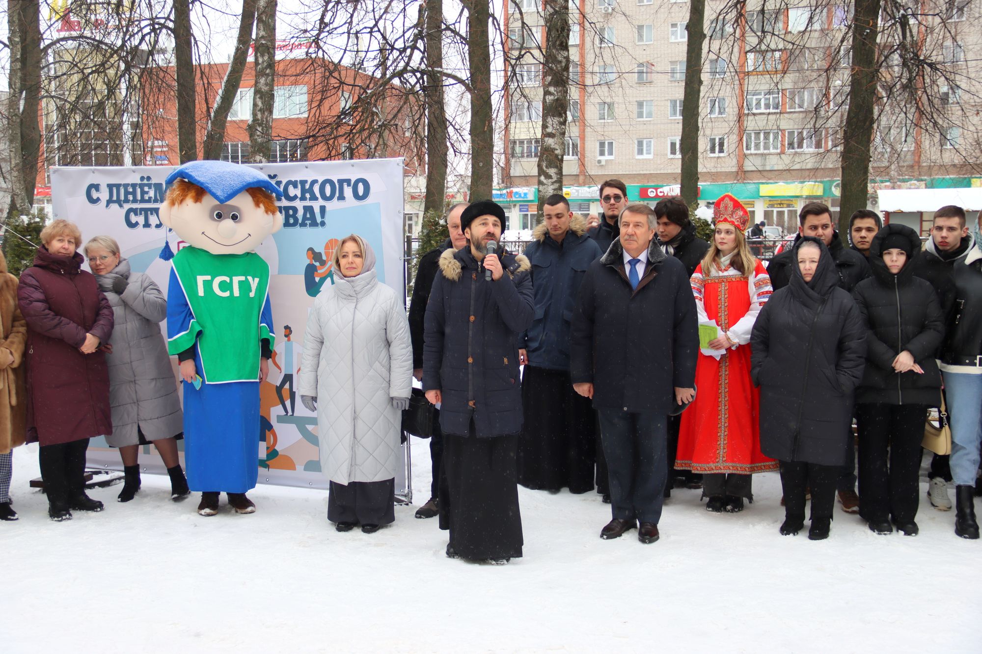 Отец Александр поздравил руководство, преподавателей, студентов и, конечно, всех именинниц с этим знаменательным днем и с днем памяти святой мученицы Татьяны. Праздничные гулянья, горячий сбитень и сладкие угощенья прямо во дворе университета порадовали и подняли настроение всем участникам праздника. Мероприятие посетили и студенты Коломенской духовной семинарии.