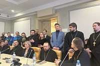 25 января 2024 года в рамках XXXII Международных Рождественских образовательных чтений в Общественной палате Российской Федерации состоялся круглый стол «Молодежь и ценности XXI века». По приглашению Председателя Синодального отдела по делам молодежи епископа Истринского Серафима на мероприятии с докладом выступил председатель Отдела по миссионерской работе и делам молодежи Коломенской епархии священник Иоанн Бакушкин.