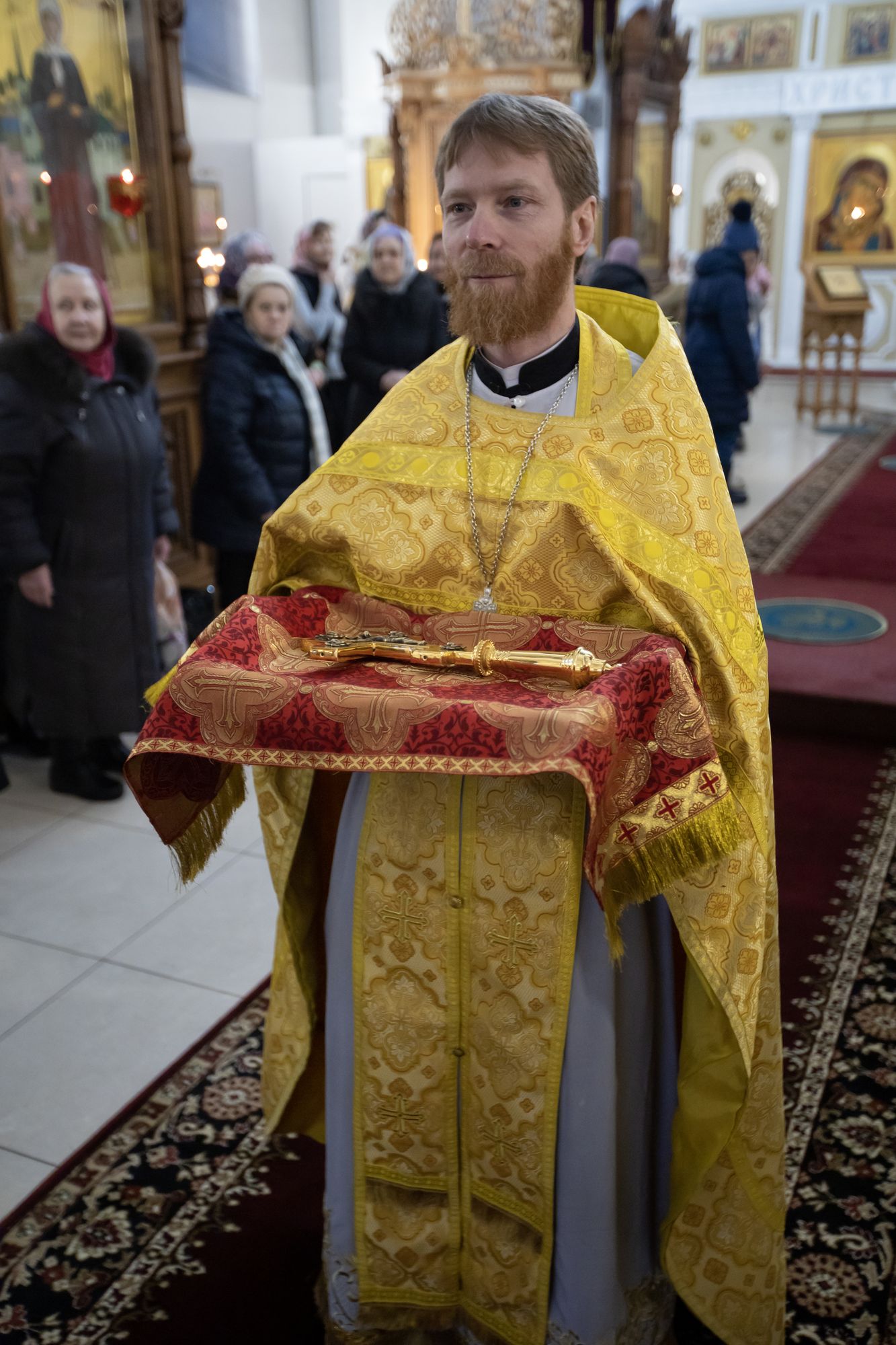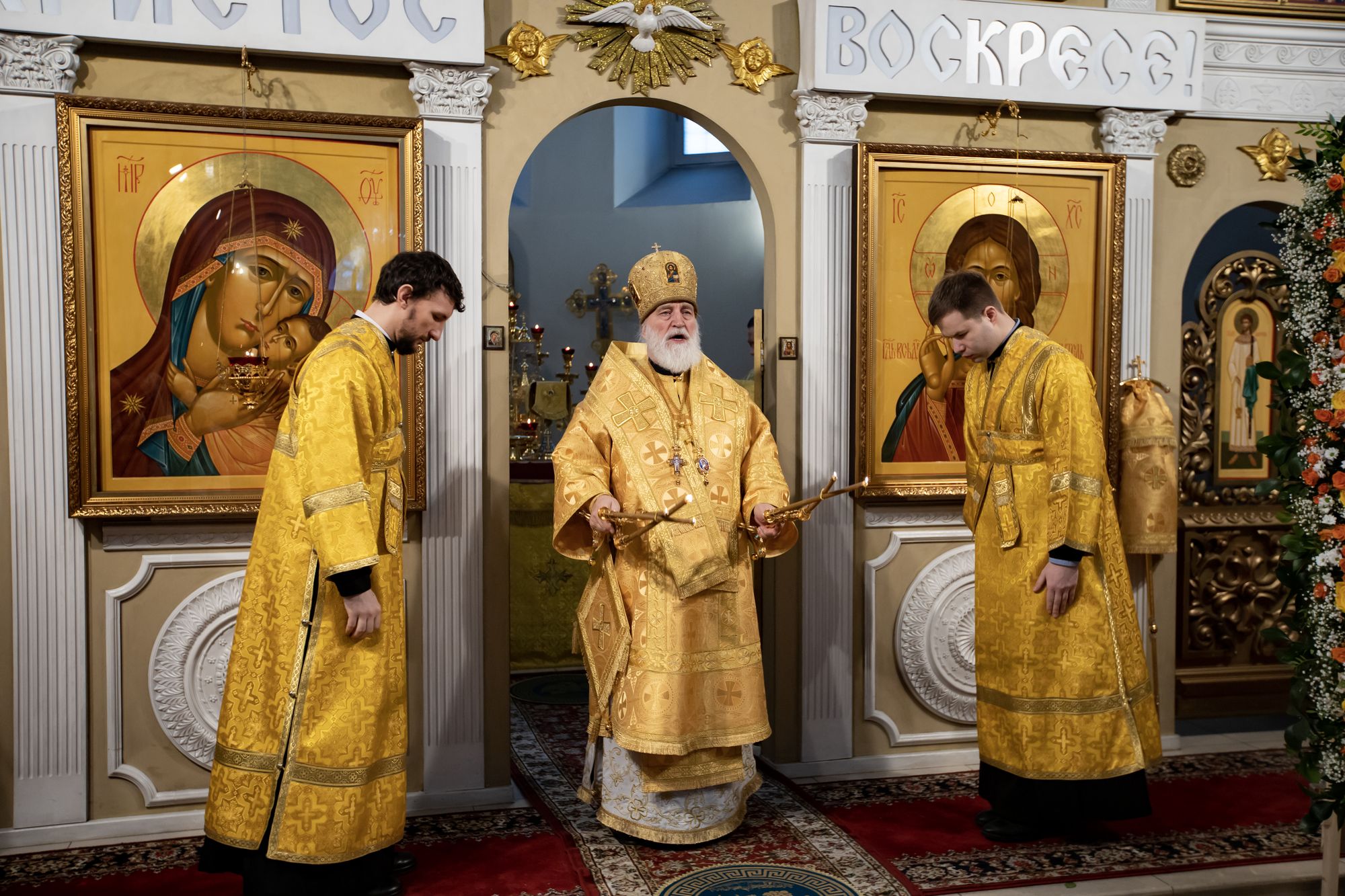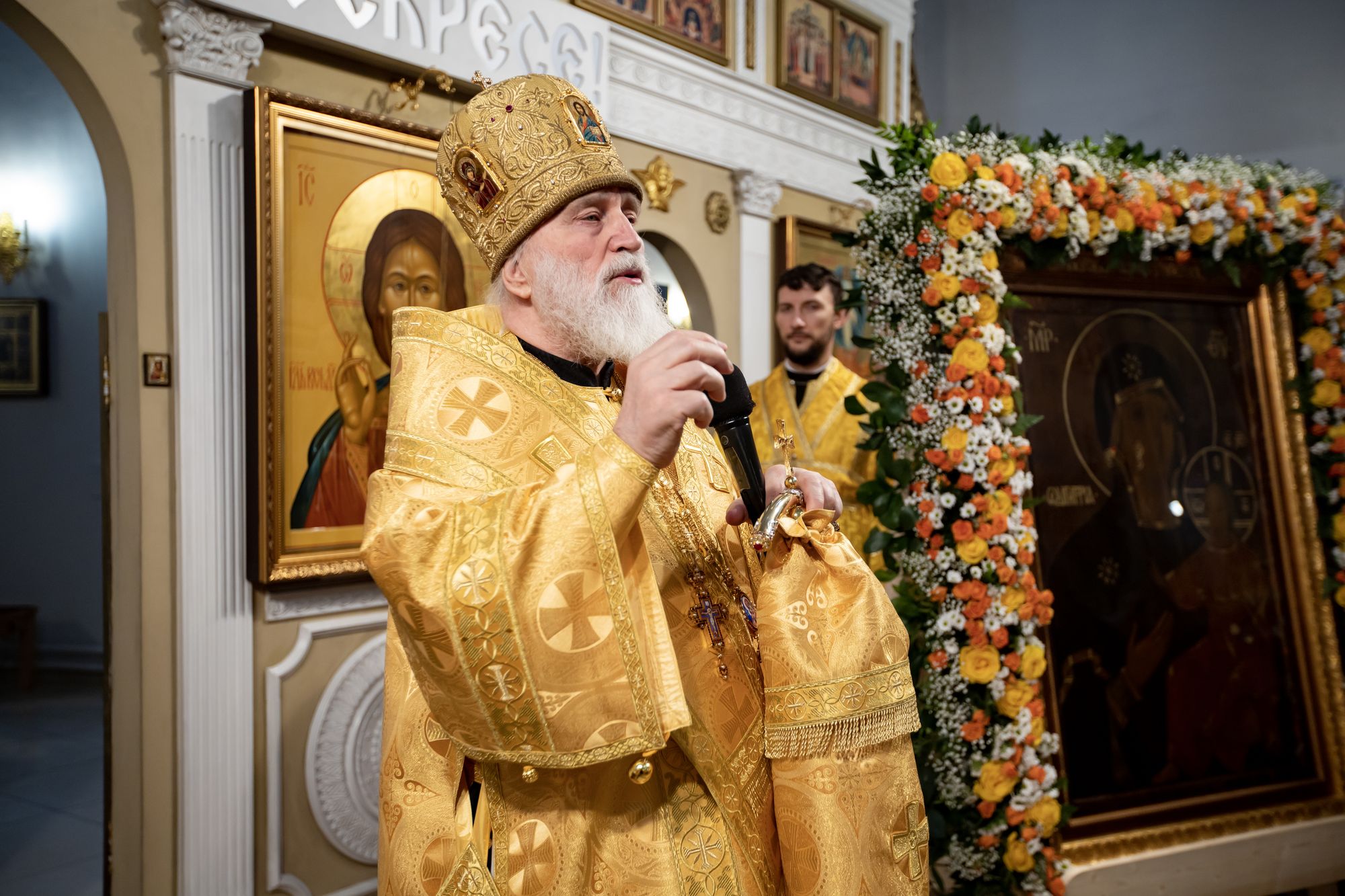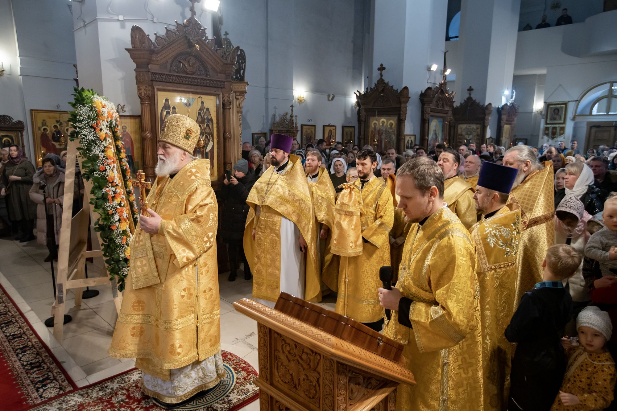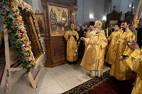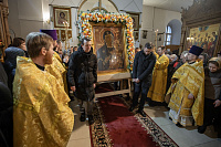 Перед началом литургии в храм была принесена «Феодотьевская» (Одигитрия) икона Божией Матери, пожертвованная в приход благотворителем Коржуевым Михаилом Вадимовичем