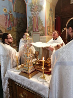 Заупокойное богослужение возглавил настоятель храма протоиерей Димитрий Колупаев в сослужении духовенства Сергиево-Посадской и Одинцовской епархий. По окончании поминальной молитвы в воскресной школе состоялась трапеза, за которой собравшиеся тепло и сердечно вспоминали отца Сергия.