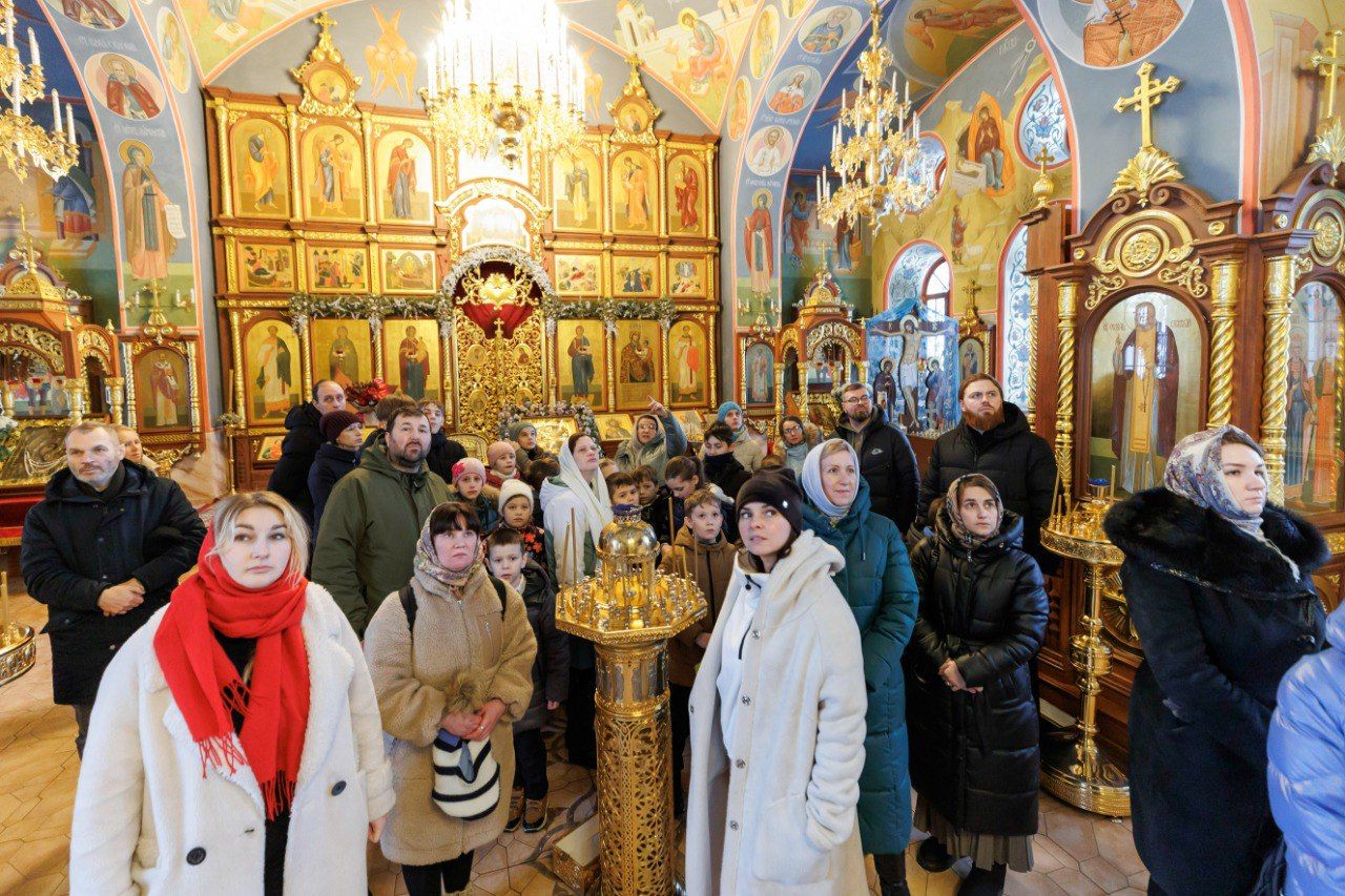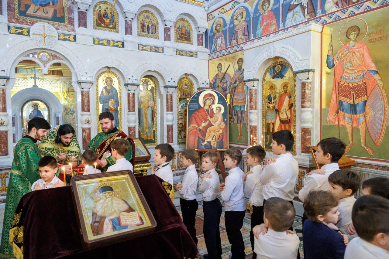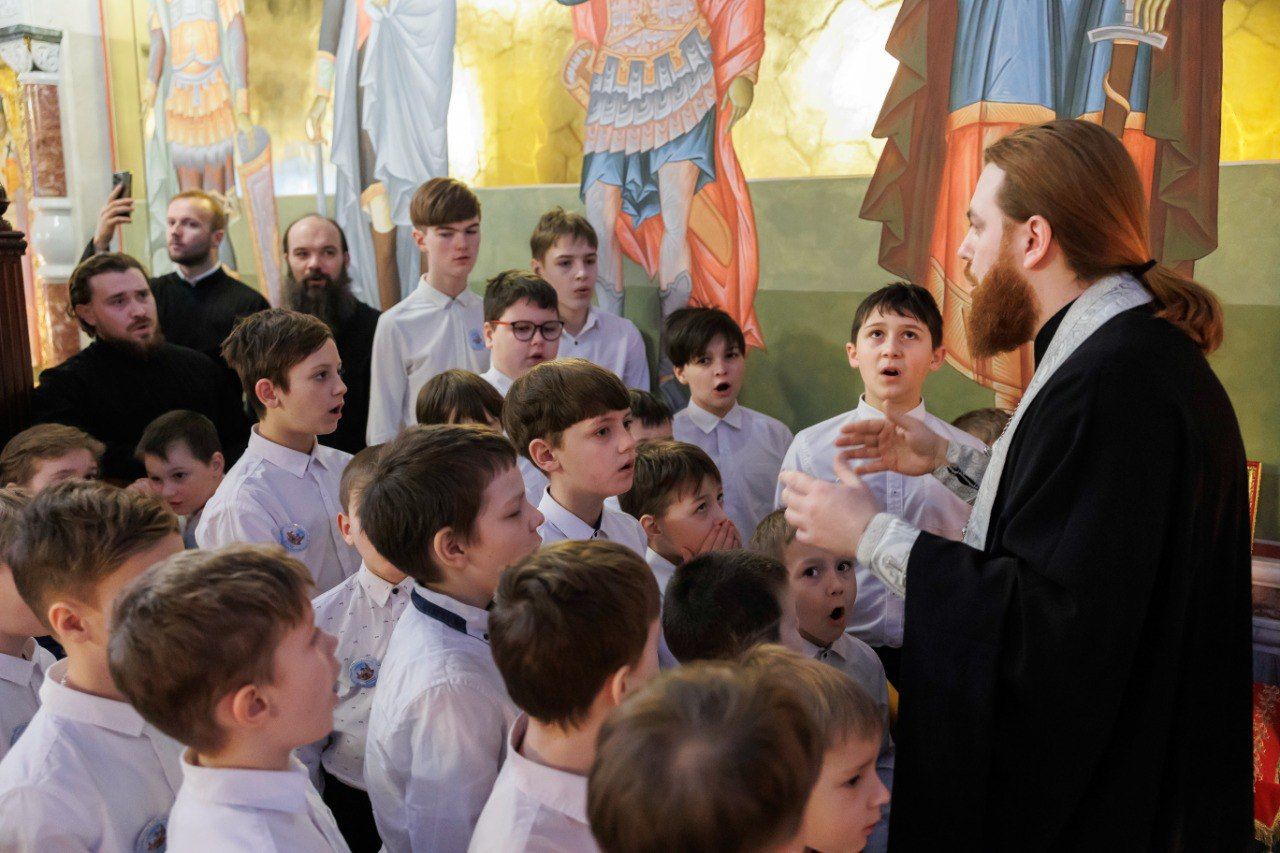 По окончании богослужения для паломников была проведена экскурсия по храму. Ребята узнали о местночтимом святом мирянине Иоанне, убиенном в годы гонений, и познакомились с опытом знаменного пения приходского мужского хора.