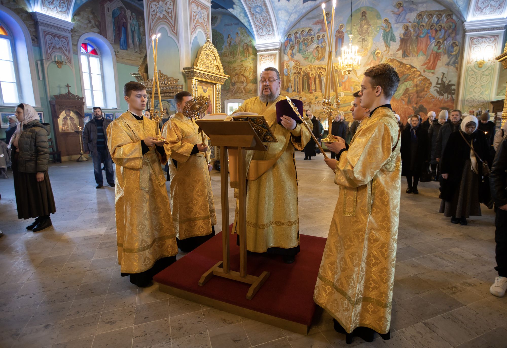 Богослужебные песнопения исполнил соборный хор под управлением Натальи Камышниковой.