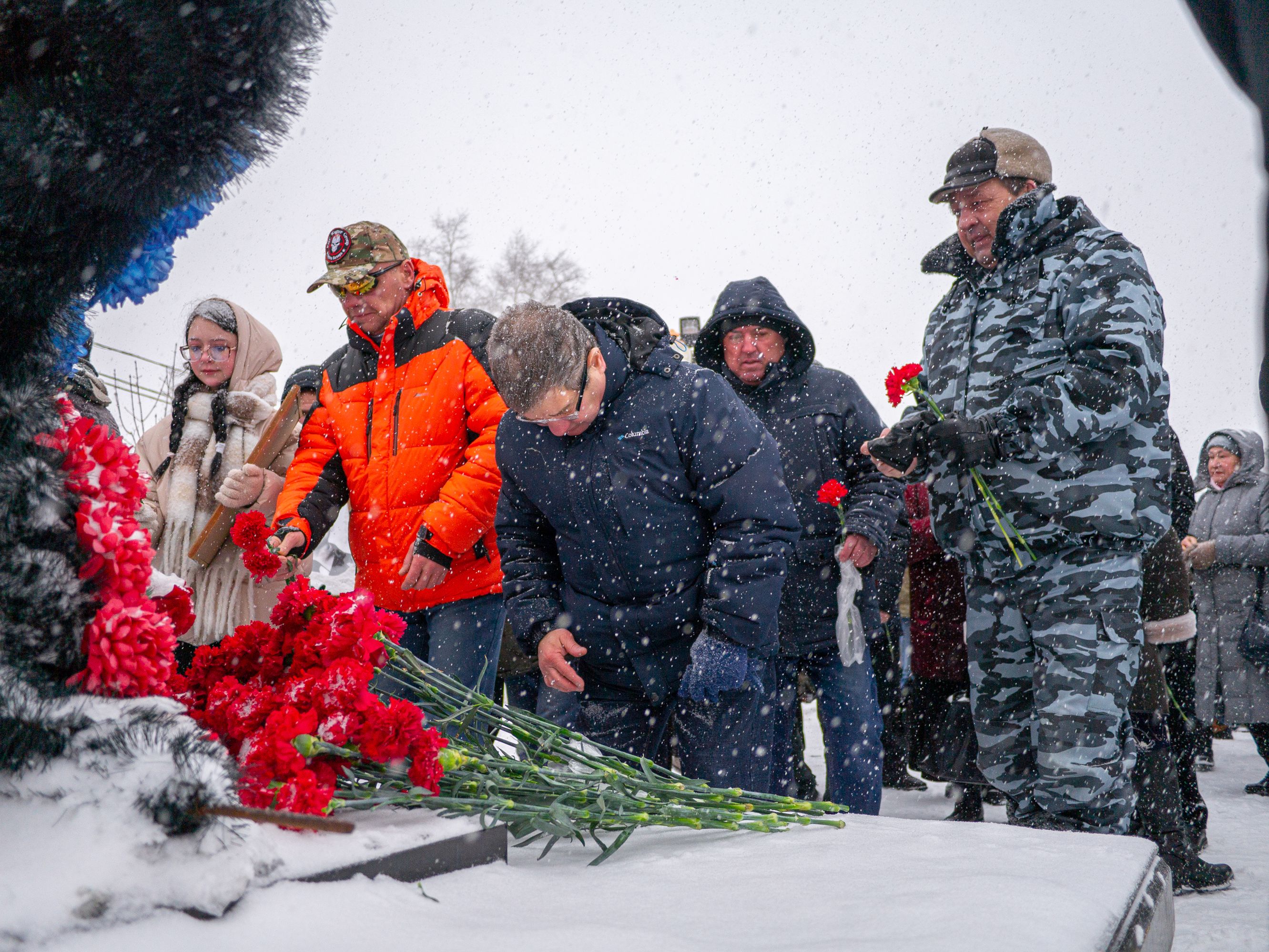 Закончился митинг минутой молчания и возложением цветов к подножию монумента.