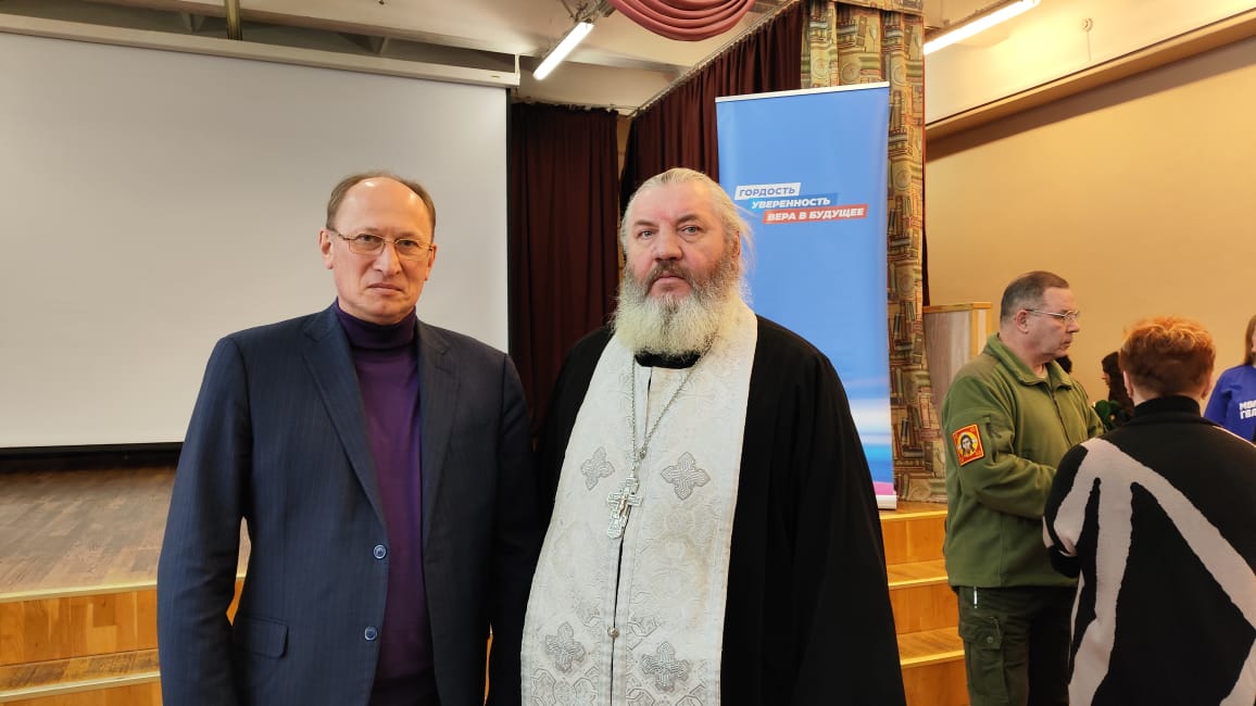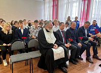 16 февраля клирик Пантелеимоновского храма иерей Виктор Колобовников принял участие в открытии Парты Героя в честь погибшего участника СВО Утина Никиты Андреевича.
