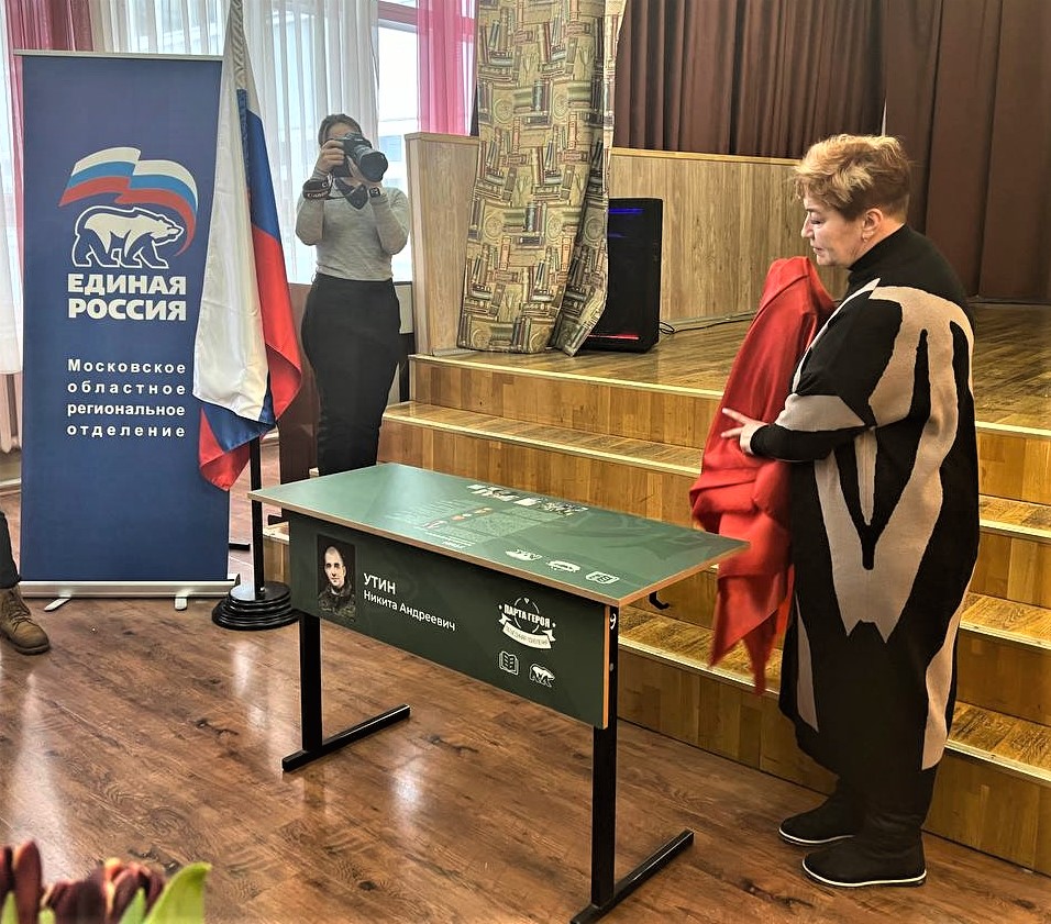 Данный образовательный проект организован партией «Единая Россия». В торжественном мероприятии, которое состоялось в средней школе № 12 г.о. Жуковский, приняли участие депутат Государственной думы ФС РФ Роман Терюшков, глава г.о. Жуковский Борис Аубакиров, боевые товарищи Никиты Утина, педагоги и ученики школы. Честь открыть парту предоставили матери Героя Наталье.