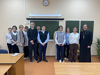 12 февраля иерей Валерий Сосковец провел встречу с 10 классом «СОШ с УИОП № 2», иерей Владимир Коценко – с 7-ми классами «СОШ с УИОП № 7», иеромонах Александр (Волков) с 7 и 8-ми классами «СОШ № 9», иерей Евгений Муравьев с 8-м классом «СОШ № 4».