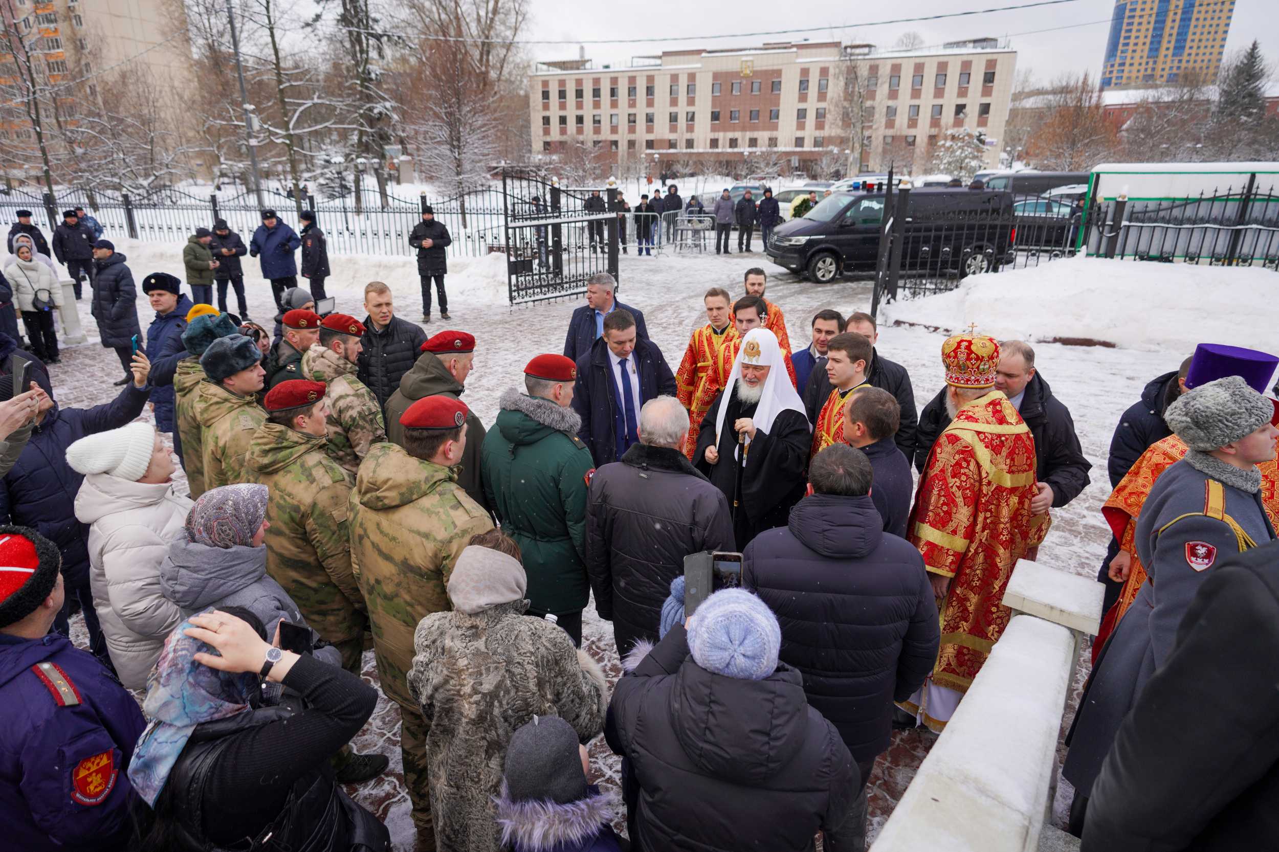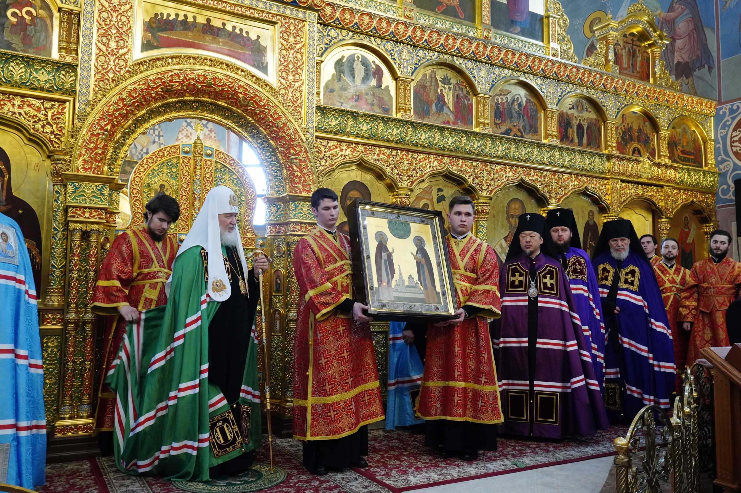 В дар храму Святейший Владыка передал икону преподобных Сергия и Никона Радонежских.