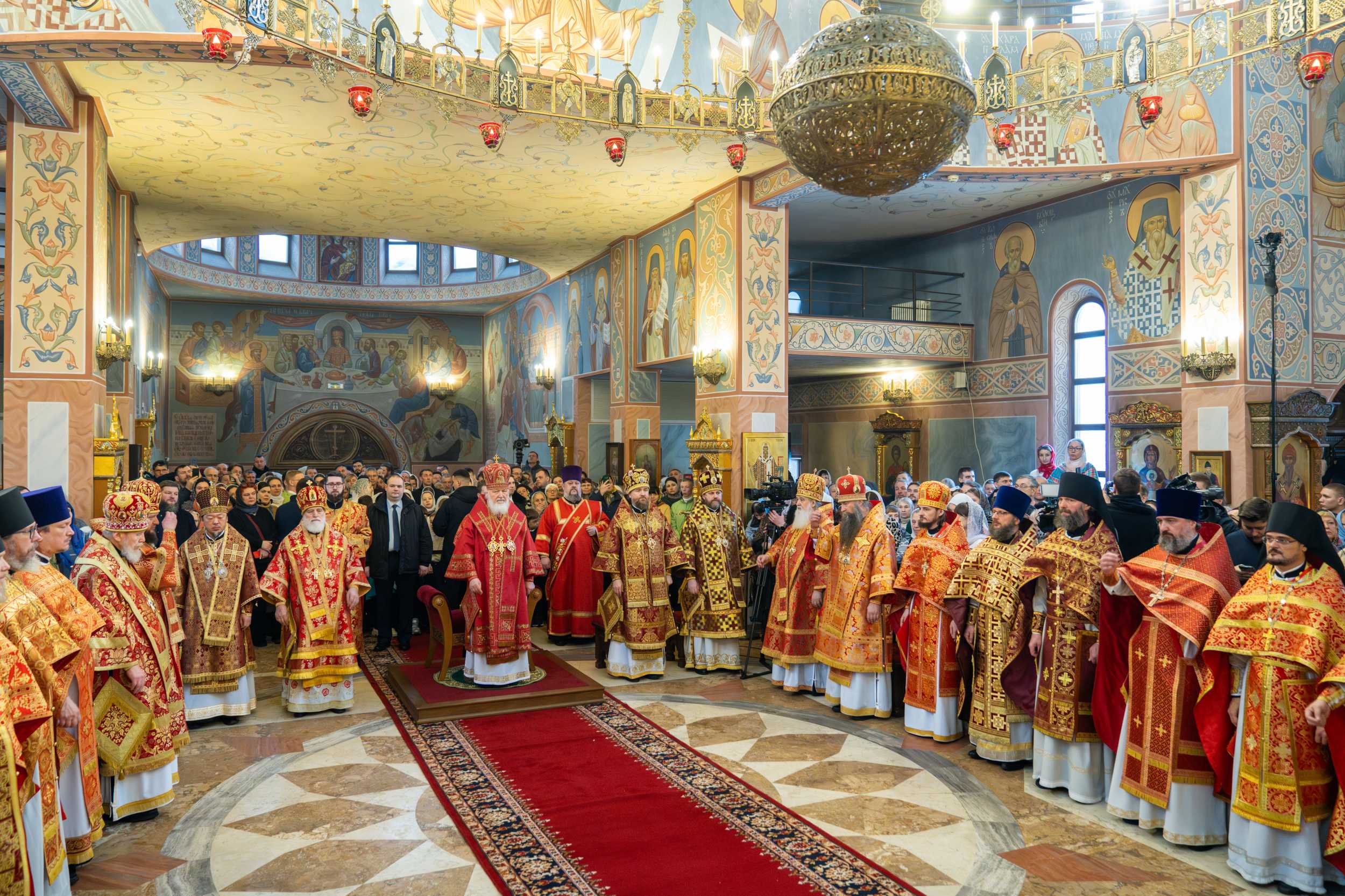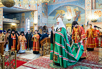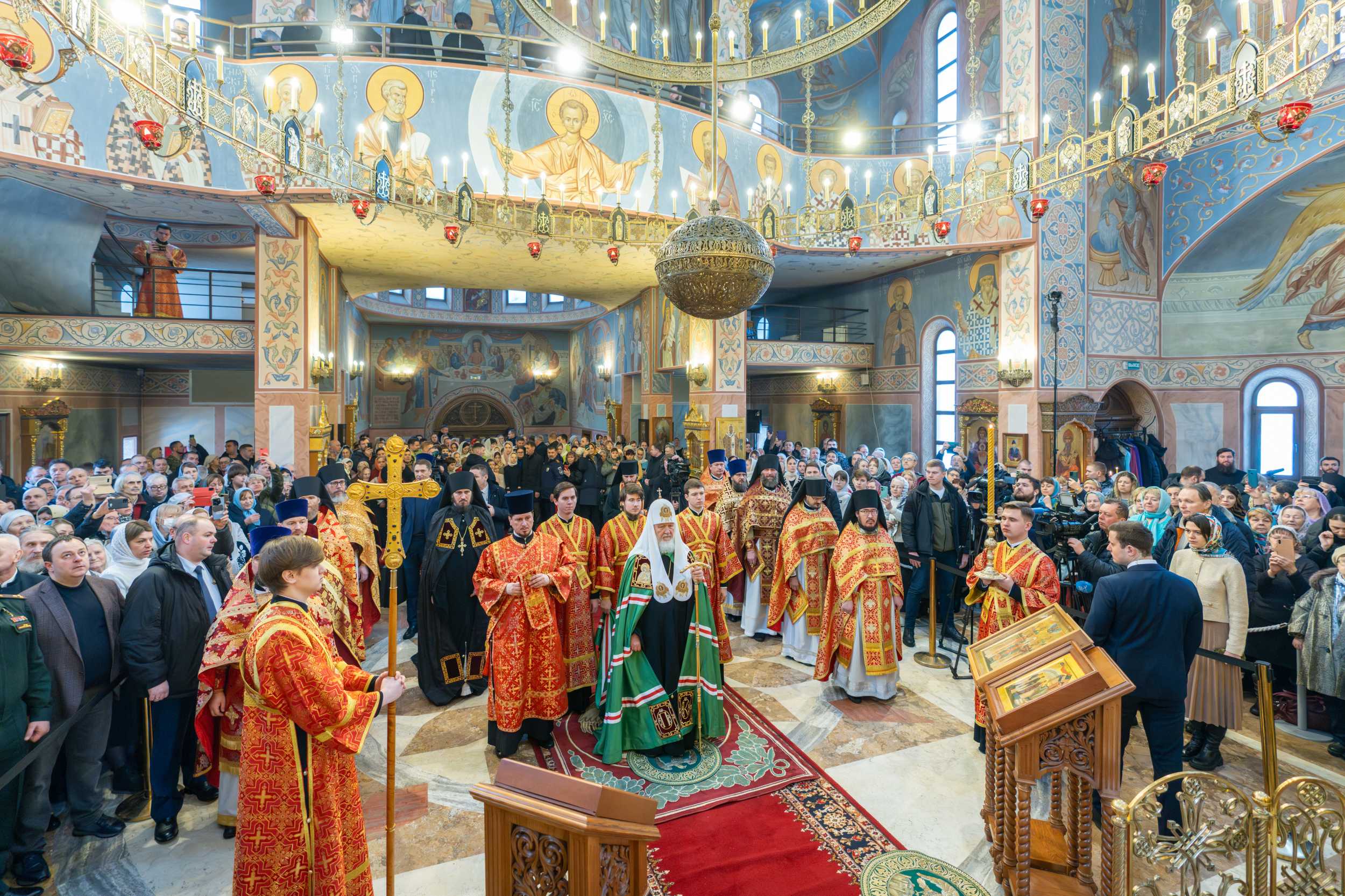 На сугубой ектении были вознесены особые прошения, Предстоятель Русской Церкви прочитал молитву о Святой Руси.