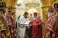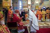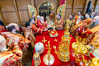 В Троицком храме Святейший Патриарх Кирилл совершил Божественную литургию и возглавил хиротонию архимандрита Ермогена (Корчукова) во епископа Туранского, викария Кызыльской епархии.