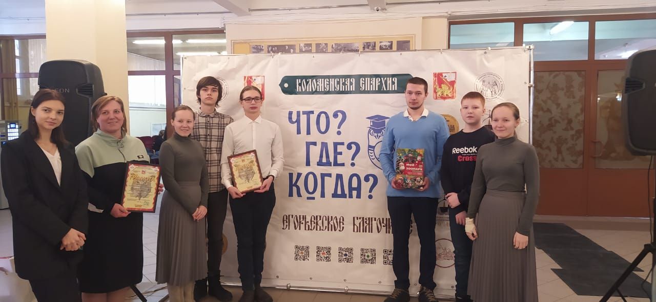 17 февраля 2024 года команда молодёжи Знаменского храма д. Алёшино г.о. Егорьевск представляла православную молодёжь 2-ого Егорьевского благочиния в епархиальной интеллектуальной игре "Что? Где? Когда?". Среди 19-ти участвовавших в игре команд ребята 2-ого Егорьевского благочиния выступили достойно и заняли итоговое пятое место. Все участники игры с пользой провели время и получили интересные и полезные подарки.