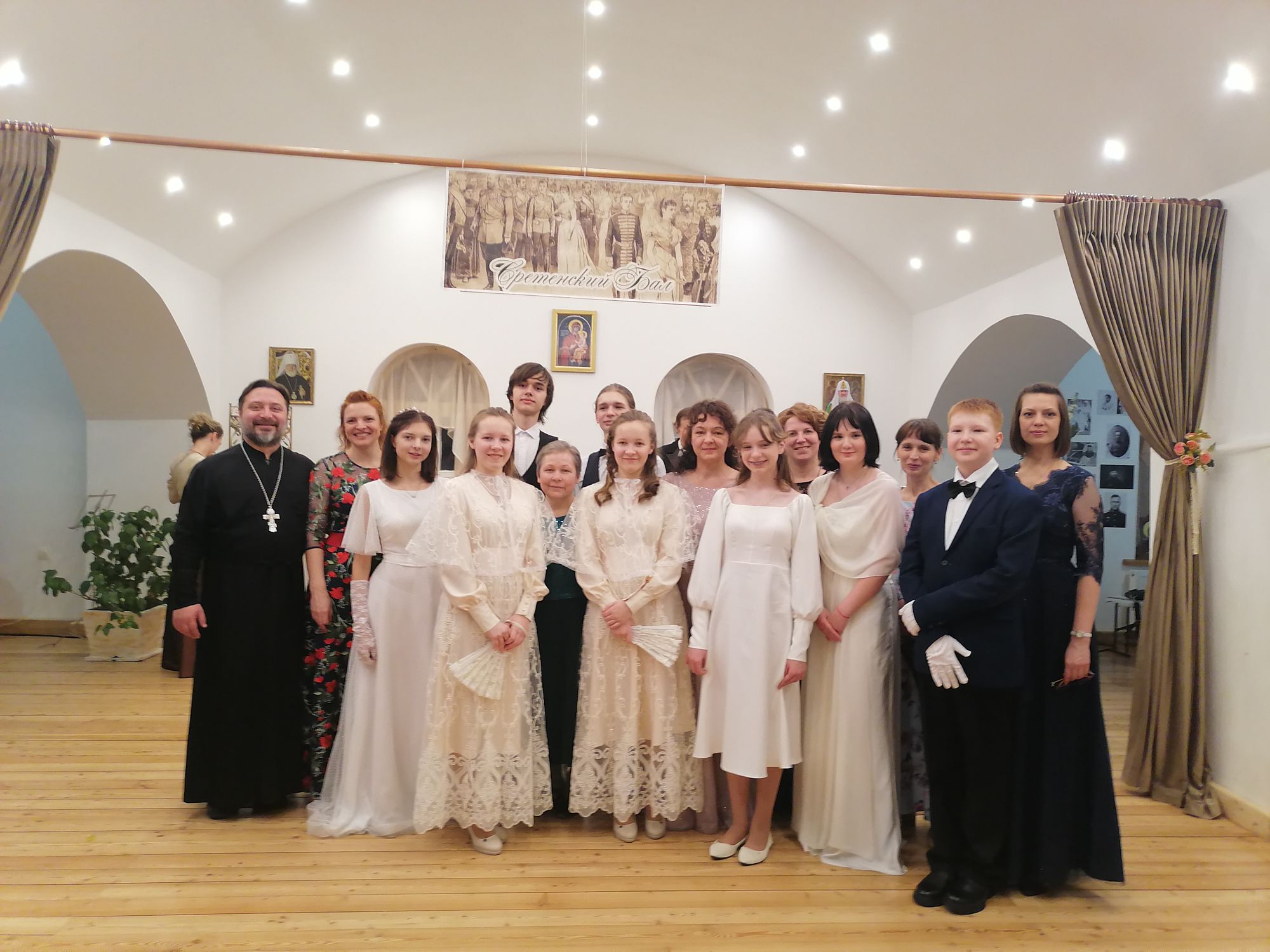 18 февраля 2024 года учащиеся молодёжного клуба "Скрижаль" и взрослой воскресной школы при Знаменском храме д. Алёшино приняли участие в православном молодёжном Сретенском бале, прошедшем в доме притча Покровского храма с. Карпово г.о. Раменский (под руководством преподавателя Школы исторических танцев при Вознесенском храме на улице Б. Никитская в Москве). С лёгкостью и грациозностью пары исполняли полонез, вальс, польку, кадриль, падепатинер, падекатр и другие танцы рубежа 19-20 веков. Учащиеся воскресной школы "Благочестие" и вокалисты Троицкого собора г. Раменское также представили поэтические и вокальные номера. Вечер получился незабываемым и романтичным.