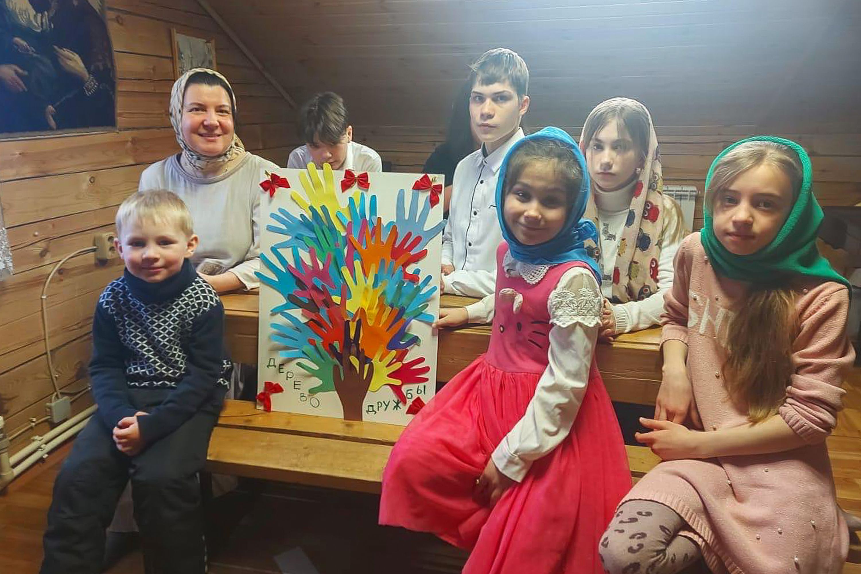 18 февраля в воскресной школе при храме великомученика Георгия Победоносца в Монино прошло занятие, посвящённое Дню молодёжи. Была изготовлена коллективная поделка «Дерево дружбы».