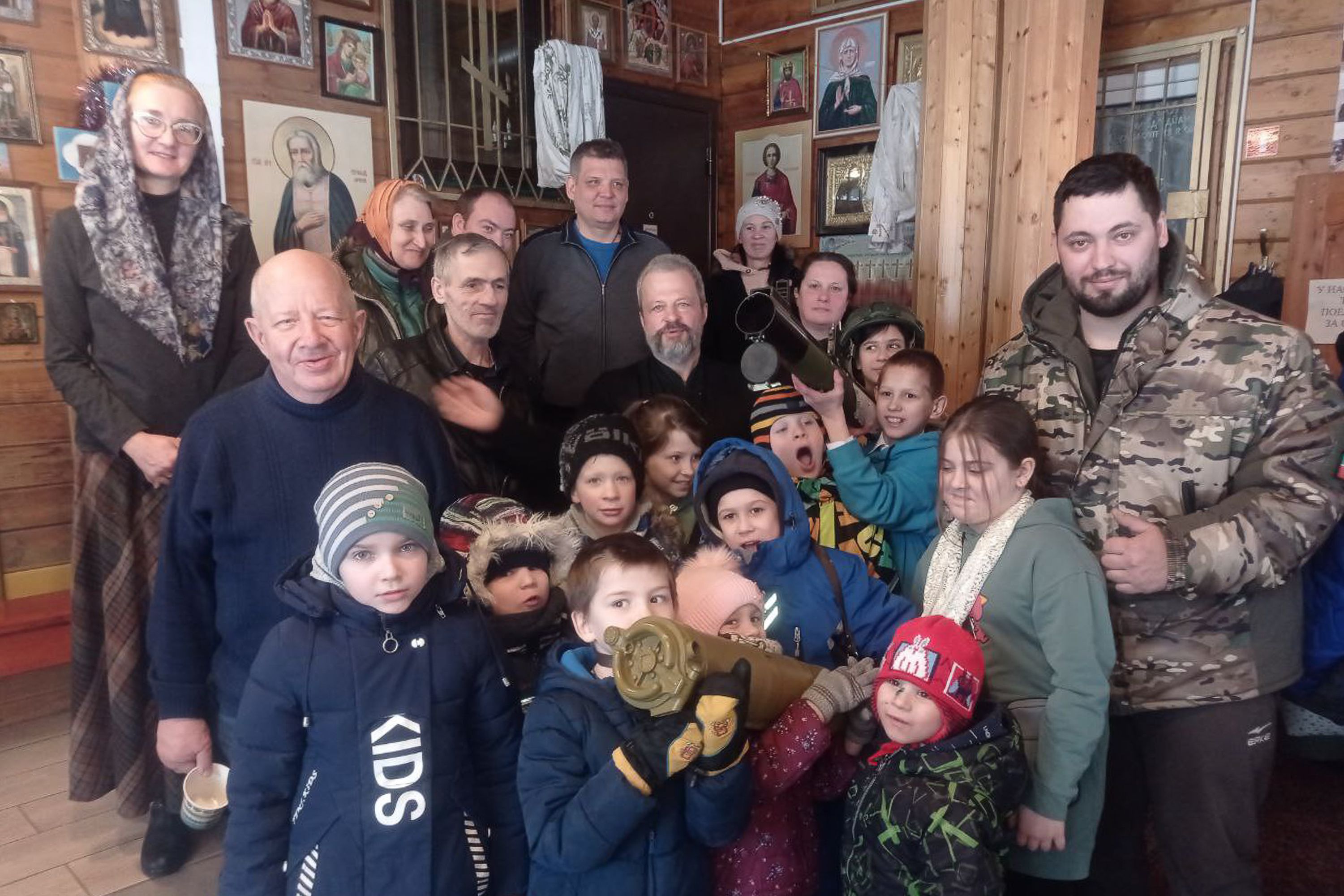 11 февраля в Александро-Невском храме посёлка Монино после богослужения была проведена встреча воспитанников воскресной школы и прихожан с добровольцем-волонтёром из Ногинска, который регулярно доставляет гуманитарные грузы в зону СВО. Были показаны тематические видеосюжеты, а также предметы военной тематики.