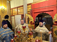 22 февраля, в день отдания Сретения Господня, благочинный Долгопрудненского церковного округа протоиерей Андрей Хмызов совершил Божественную литургию в храме иконы Божией Матери «Взыскание погибших».