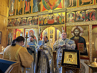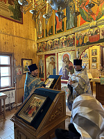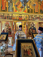Ему сослужил настоятель храма иерей Алексий Пиков. По окончании богослужения было совершено славление празднику и освящена Феодоровская икона Пресвятой Богородицы, написанная одной из прихожанок. Затем отец благочинный осмотрел приходскую территорию, часть из которой расположена на территории Дмитровского лесного хозяйства, и выразил удовлетворение сложившимися отношениями между приходом и Комитетом лесного хозяйства Московской области.