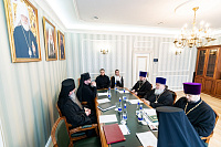 В начале собрания владыка поблагодарил всех его участников за усердие в различных направлениях церковного служения и озвучил рекомендации и замечания для дальнейшей работы. Одной из значимых тем обсуждения стало увековечение памяти новомучеников, совершавших служение на территории Подольской епархии. Участники встречи обсудили предполагаемую дату празднования дня памяти новомучеников и исповедников Подольской епархии.