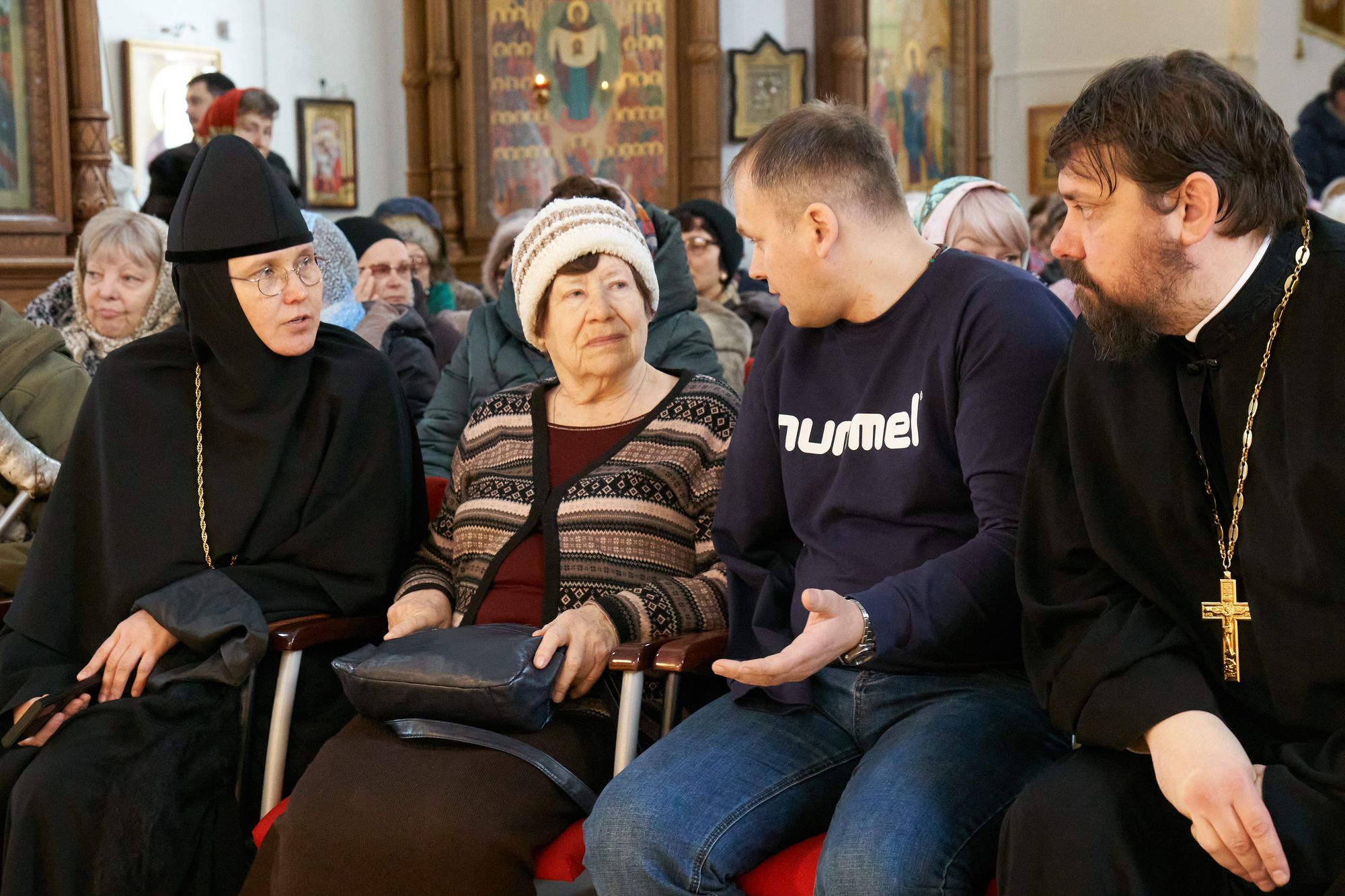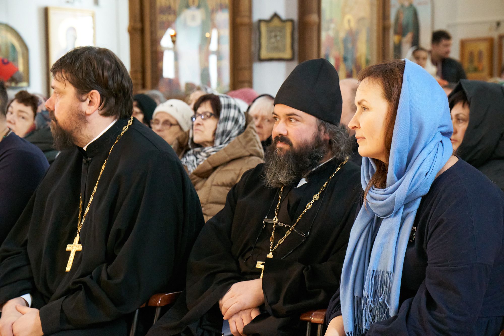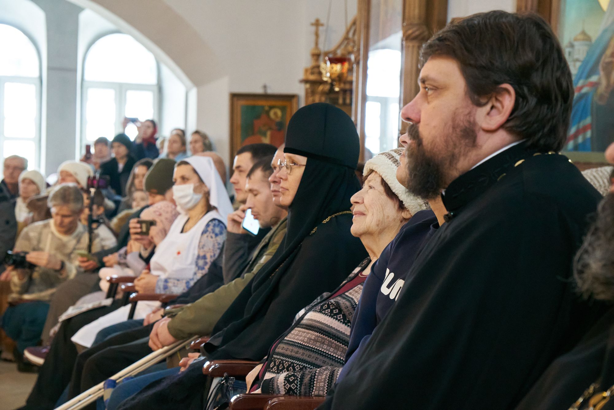 Среди слушателей были участники боевых действий и члены их семей, сотрудники больницы святителя Алексия и прихода, прихожане храмов Жуковского благочиния, многочисленные жители наукограда. С приветственным словом к собравшимся обратился благочинный Жуковского церковного округа, настоятель Пантелеимоновского храма иерей Димитрий Денисов.