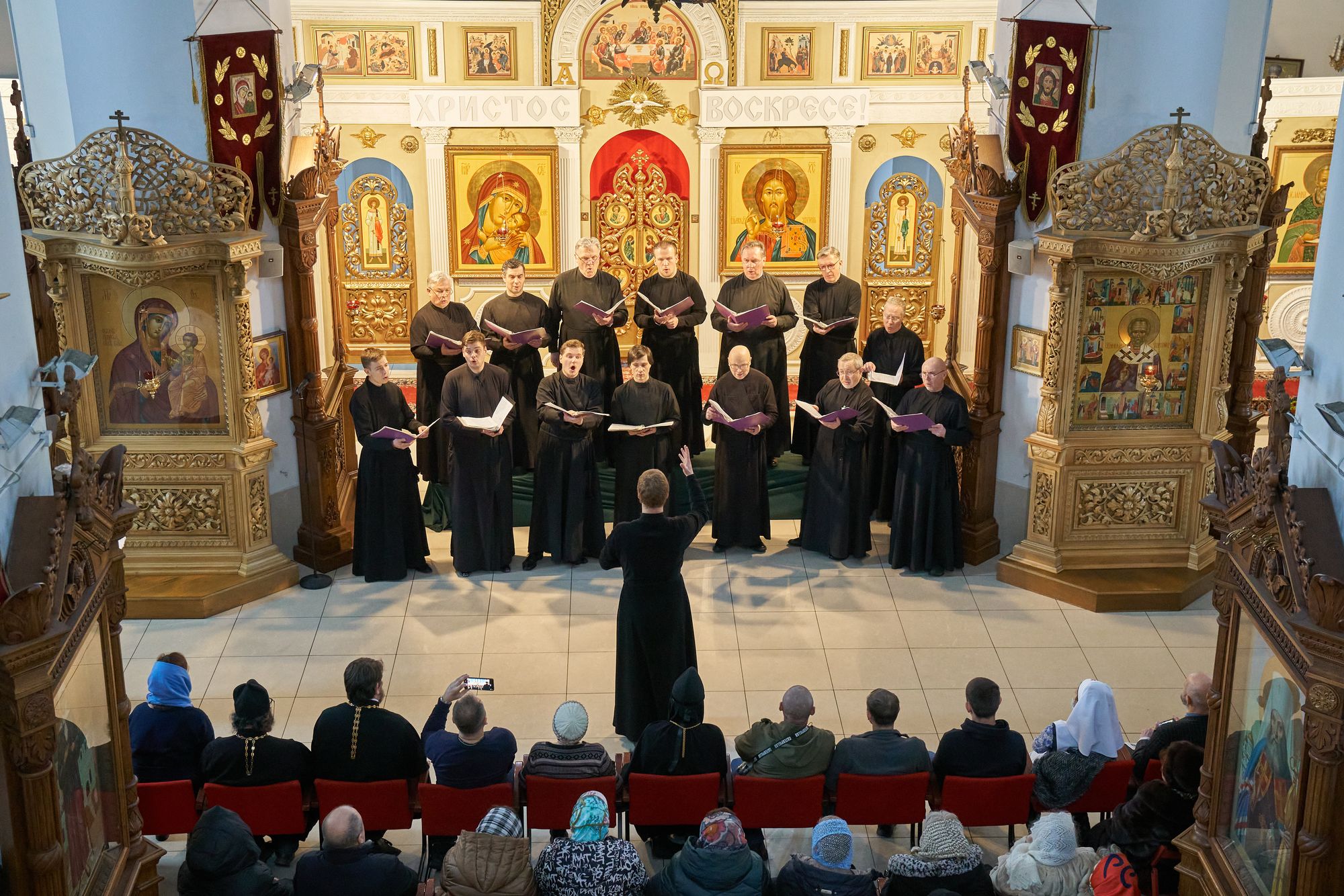 Затем праздничная программа продолжилась в Преображенской церкви Пантелеимоновского прихода. Здесь состоялся концерт хора Новоспасского ставропигиального мужского монастыря.