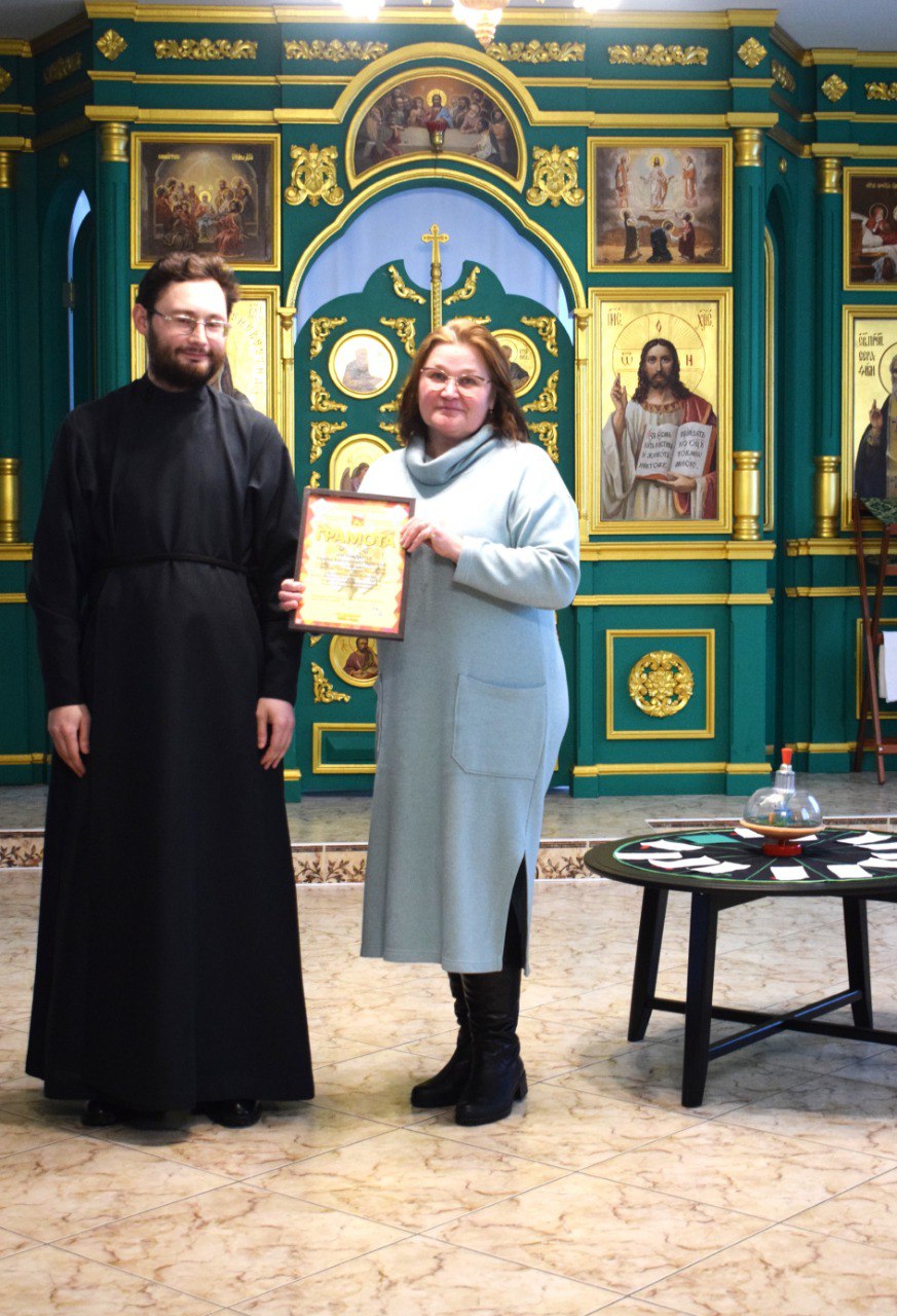 Перед началом турнира Грамотами Молодежно-миссионерского отдела Коломенской епархии за вклад в развитие молодёжного движения в Егорьевске были награждены Мария Владимировна Мусатова - ведущий методист Егорьевской Городской библиотеки и Ирина Викторовна Куликова - педагог-психолог православного молодежного клуба "Очаг" при Александро-Невском храме.