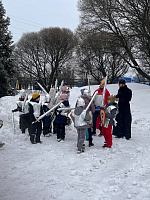 25 февраля 2024 года в неделю о мытаре и фарисее на приходе Владимирского храма была проведена реконструкция «Ледового побоища». Мероприятие имело семейный формат и было организовано творческим коллективом воскресной школы. В реконструкции приняли участие воспитанники воскресной школы Владимирского храма с родителями и родственниками, члены молодежного движения «Ника», алтарники и другие активные прихожане.