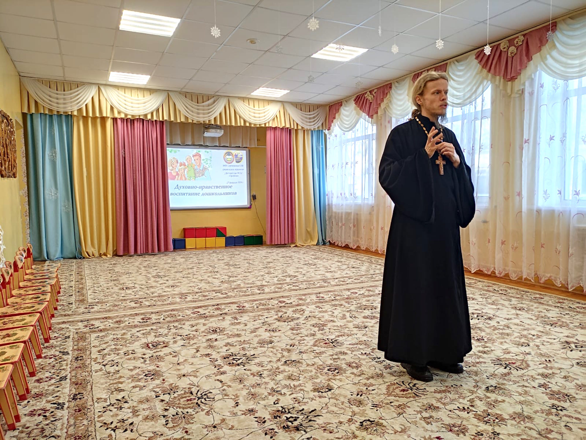 27 февраля ответственный в 1-м, 2-м и 3-м Коломенских благочиниях за религиозное образование и катехизацию, клирик Михаило-Архангельского храма города Коломны иерей Димитрий Шаповалов принял участие в родительском собрании «Духовно-нравственное воспитание дошкольников», которое прошло в дошкольном отделении Сергиевской средней школы г. о. Коломны.