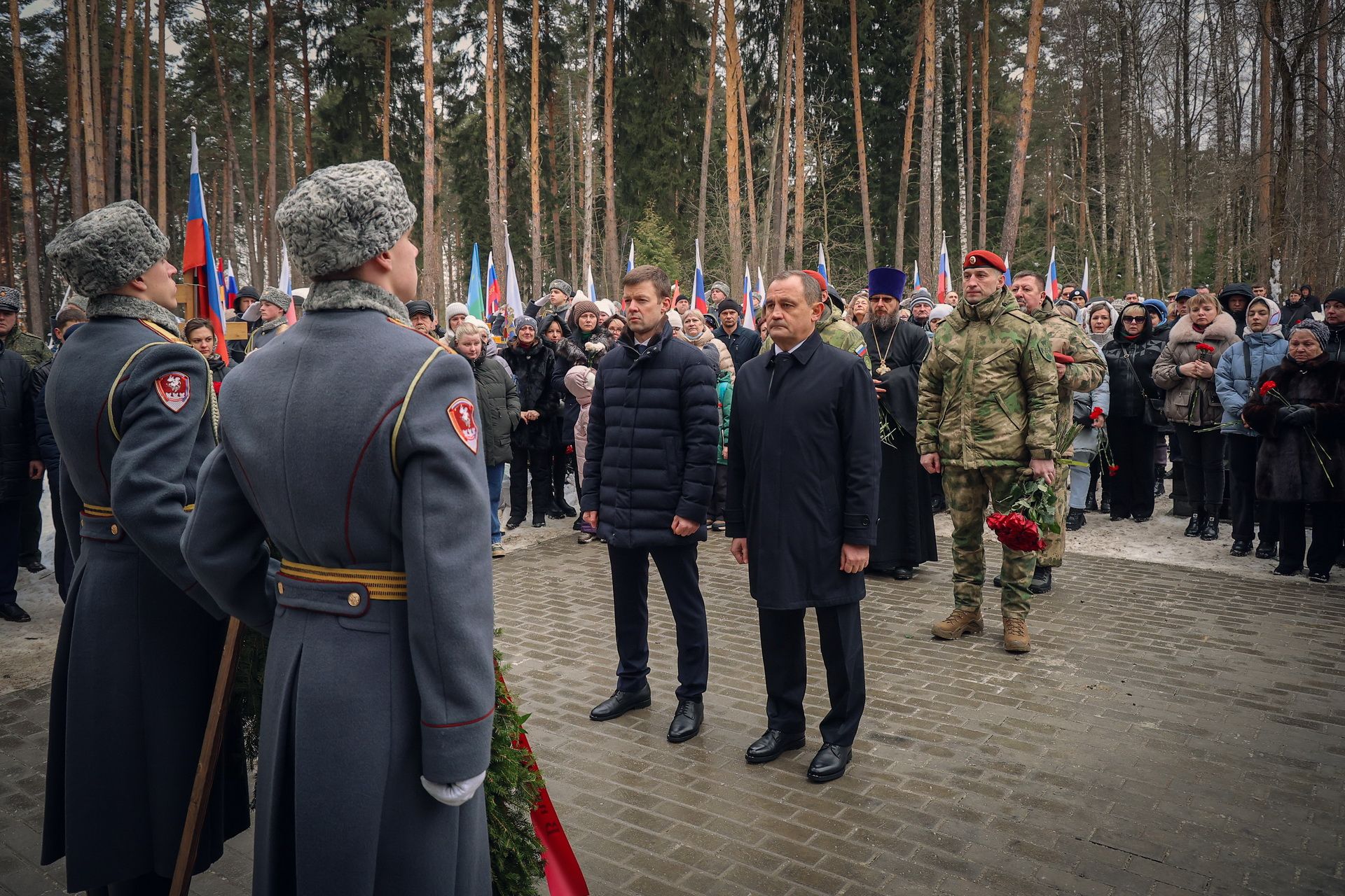 В открытии памятника приняли участие депутаты областной думы и городского совета, руководители предприятий и учреждений округа, военнослужащие и семьи участников СВО.