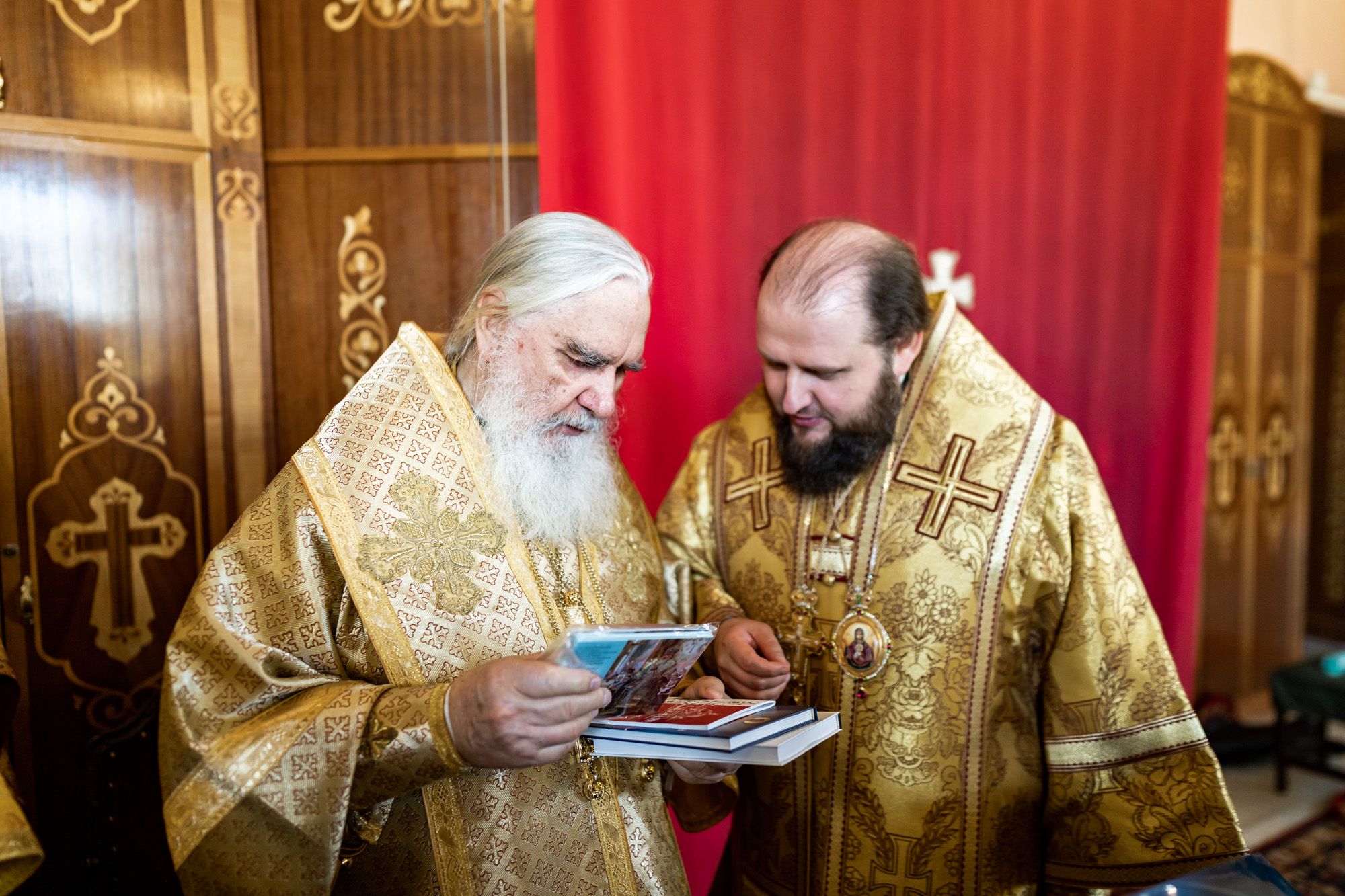 Архипастырям сослужили: секретарь Подольского епархиального управления иерей Константин Семёнов, член Епархиального совета Подольской епархии, настоятель Троицкого храма города Люберцы протоиерей Пётр Иванов, заместитель председателя Издательского Совета иеромонах Макарий (Комогоров), ведущий специалист Издательского Совета по взаимодействию с епархиями Русской Православной Церкви иерей Захарий Савельев, и.о. благочинного Серпуховского церковного округа иерей Дионисий Коськин, благочинный Люберецкого церковного округа иерей Вячеслав Новак, настоятель собора Николы Белого архимандрит Кирилл (Костиков), ответственный за книгораспространение и развитие библиотечной сети в Подольской епархии иерей Антоний Киндяков и духовенство Подольской епархии.