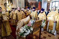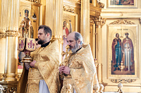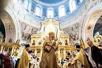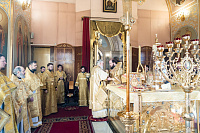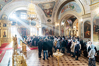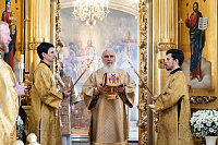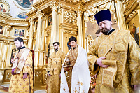 По сугубой ектении была вознесена молитва о Святой Руси. Богослужебные песнопения исполнил квартет архиерейского хора под управлением Ярослава Филипсонова.