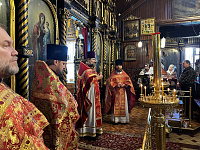 Богослужение возглавил настоятель Троицкого храма пос. Удельная, ректор Коломенской духовной семинарии протоиерей Вадим Суворов. Ему сослужили благочинный 2-ого Раменского церковного округа иерей Николай Усынин, благочинный 1-ого Раменского церковного округа игумен Никодим (Лунев), а также клирики храма. Диаконский чин возглавил клирик Троицкого храма г. Раменское диакон Илия Быков.
