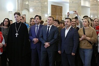 По благословению благочинного Долгопрудненского округа к собравшимся обратился клирик храма Преображения Господня священник Иоанн Слобжин. В своем слове отец Иоанн рассказал о волонтёрской деятельности в благочинии, уделив особое внимание трудам добровольческого объединения при Долгопрудненской городской больнице.