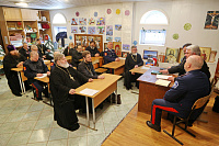 В ходе собрания председатель Отдела протоиерей Сергий Рыбаков рассказал о сборе гуманитарной помощи мирным жителям Украины и военнослужащим, выполняющим Специальную военную операцию. Ответственный за взаимодействие с казачеством протоиерей Андрей Козорезов сделал сообщение о совершённых гуманитарных конвоях в зону СВО.