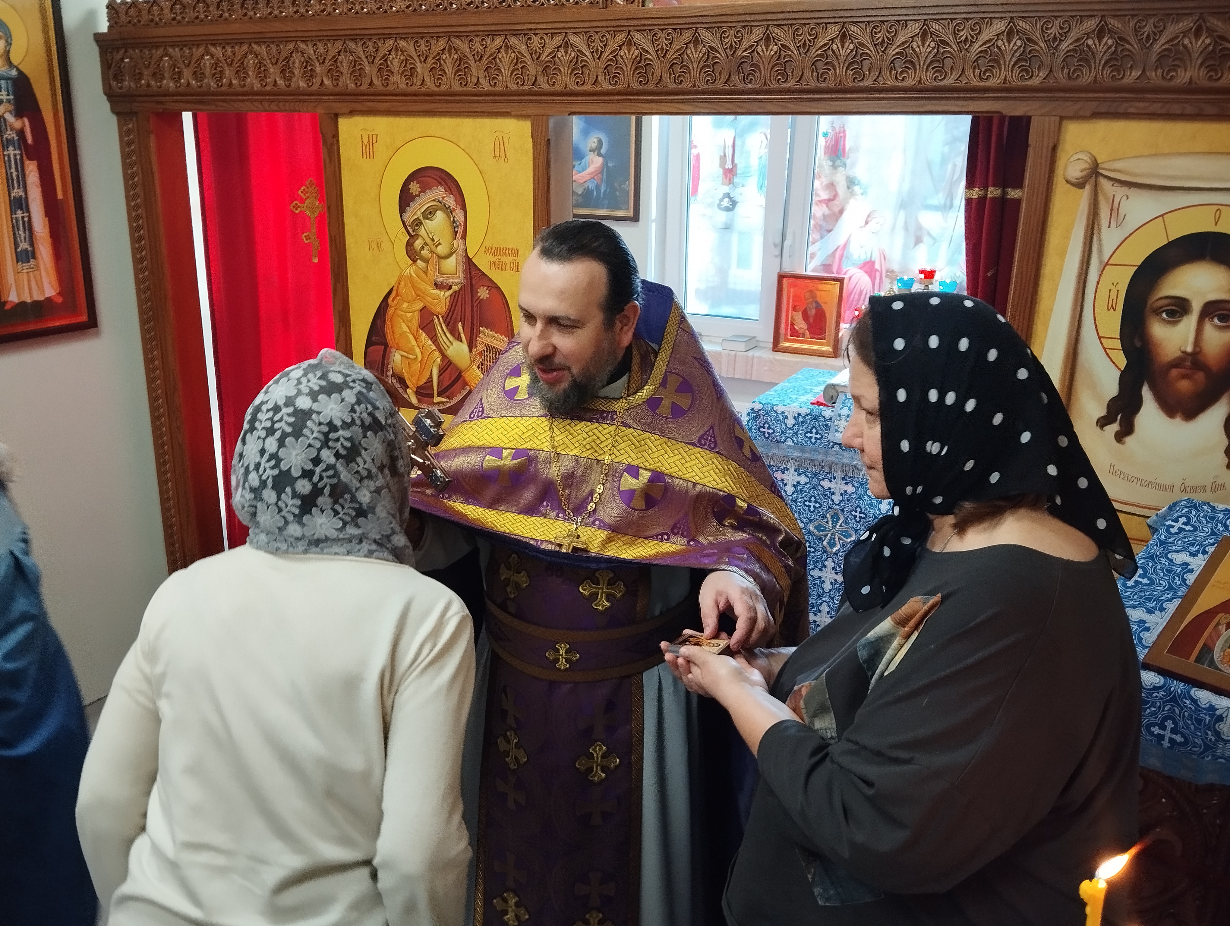 27 марта в Феодоровском домовом храме при Коломенском Перинатальном центре отметили престольный праздник в честь Феодоровской иконы Божией Матери. В этот день Литургию Преждеосвященных Даров совершил настоятель храма иерей Виктор Волков. По окончании богослужения отец Виктор поздравил собравшихся с праздником.