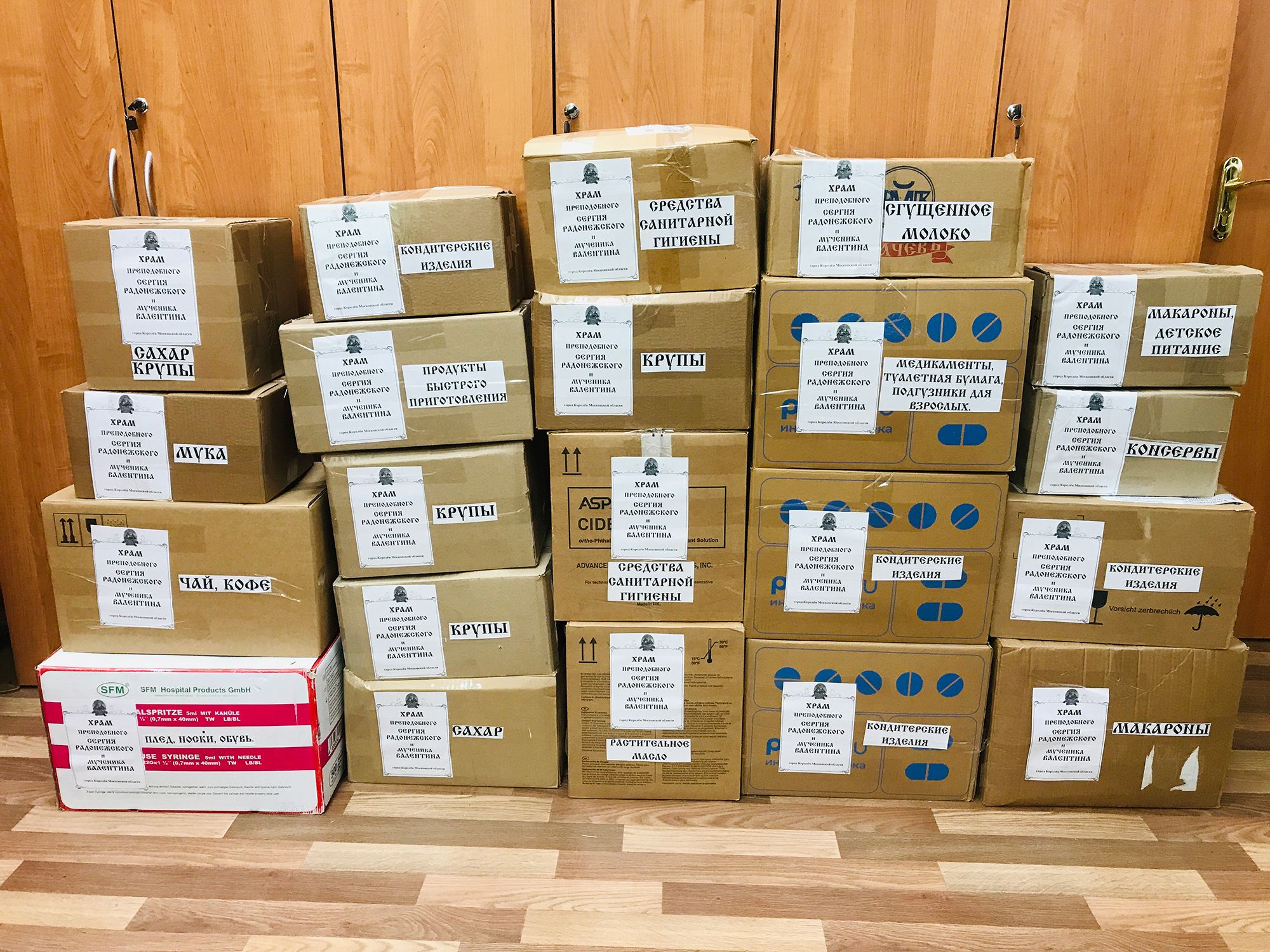 На приходах благочиния был организован сбор продуктов питания, медикаментов, одежды, детского питания, средств личной гигиены, церковной утвари и к 27 марта сформирован гуманитарный груз весом 4.3 тонны.