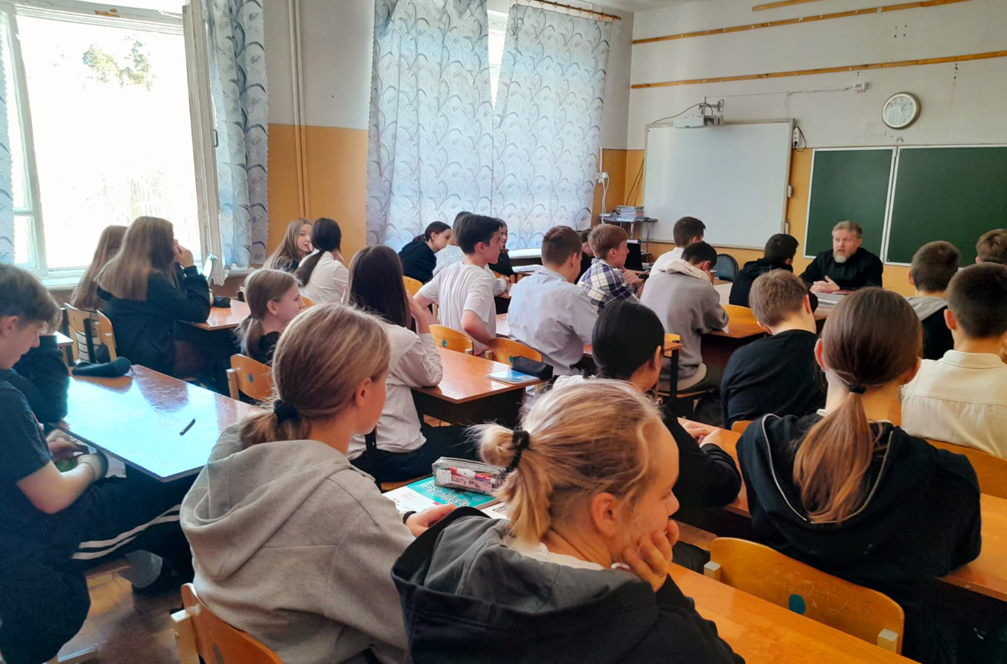 Священники провели беседу с учащимися 8-х классов образовательных учреждений. Тема бесед была «О важности человеческого слова». Школьникам был показан документальный фильм «Грязные слова» общественной организации «Общее дело», в котором рассматривались различные аспекты, связанные с данной проблематикой: каковы психологические причины распространения мата; что по поводу сквернословия говорили государственные и общественные деятели в разные времена; распространение мата в историческом ракурсе и д.р.