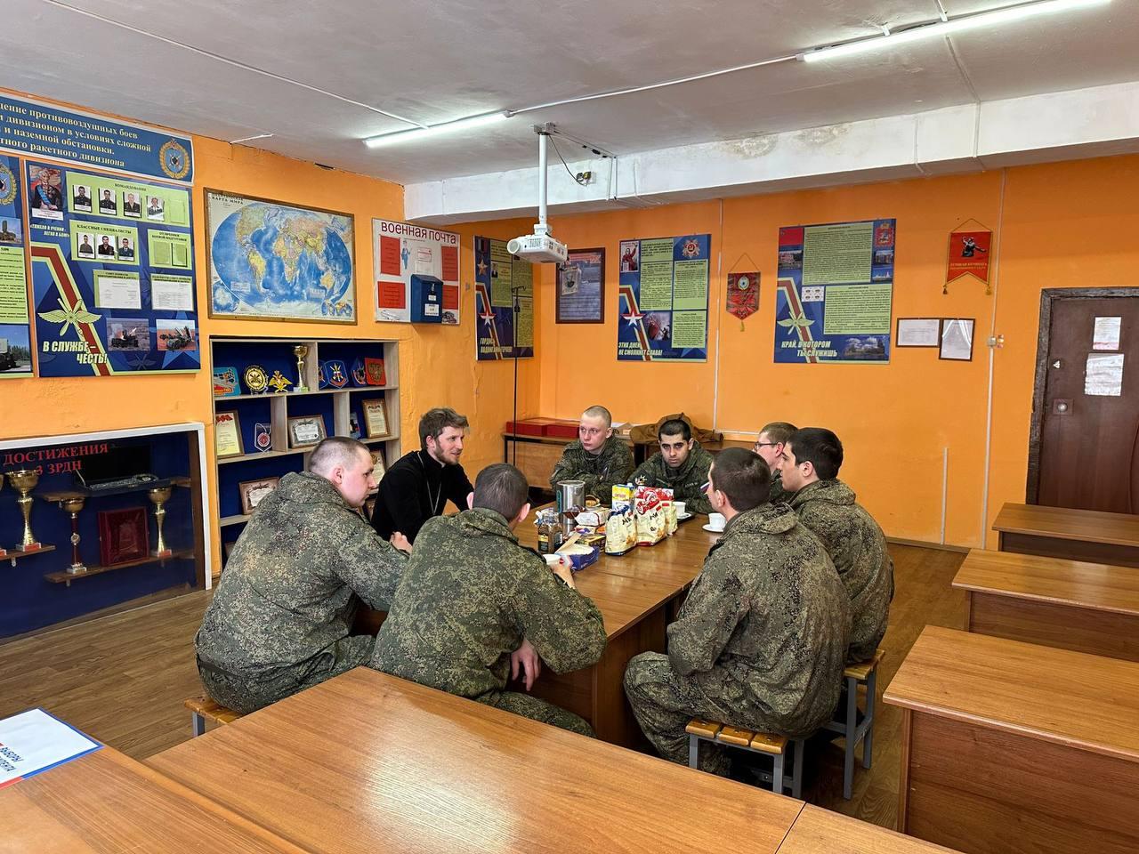 30 марта клирик Свято-Духовского храма деревни Дубровки священник Марк Рожнов провёл беседу с военнослужащими 210 зенитно-ракетного полка.