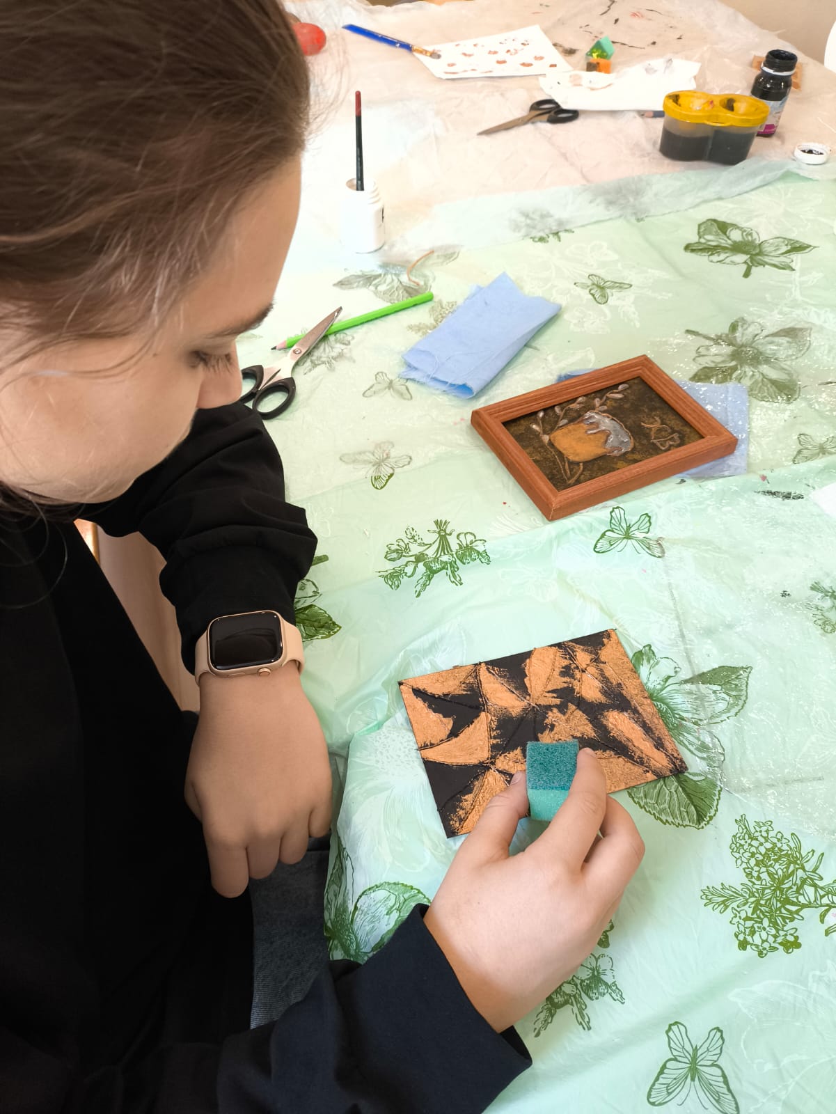 31 марта учащиеся младшей группы православно-молодежного клуба "Очаг" при Александро-Невском храме и представители работающей молодёжи приняли участие в мастер-классе "Создание картины в технике Пейп-арт", который организовала педагог-психолог Ирина Викторовна Куликова.