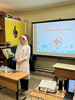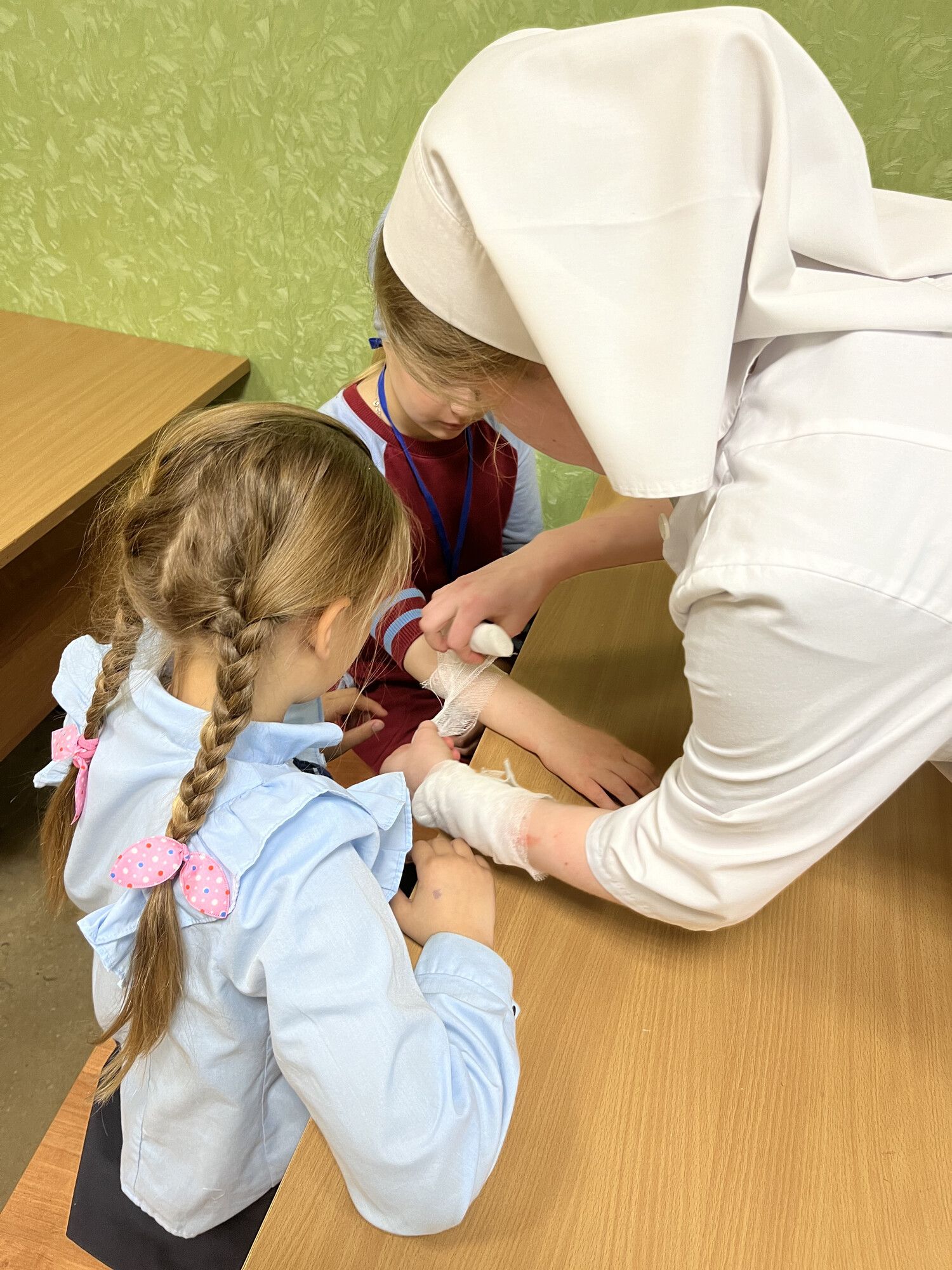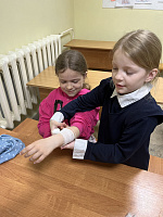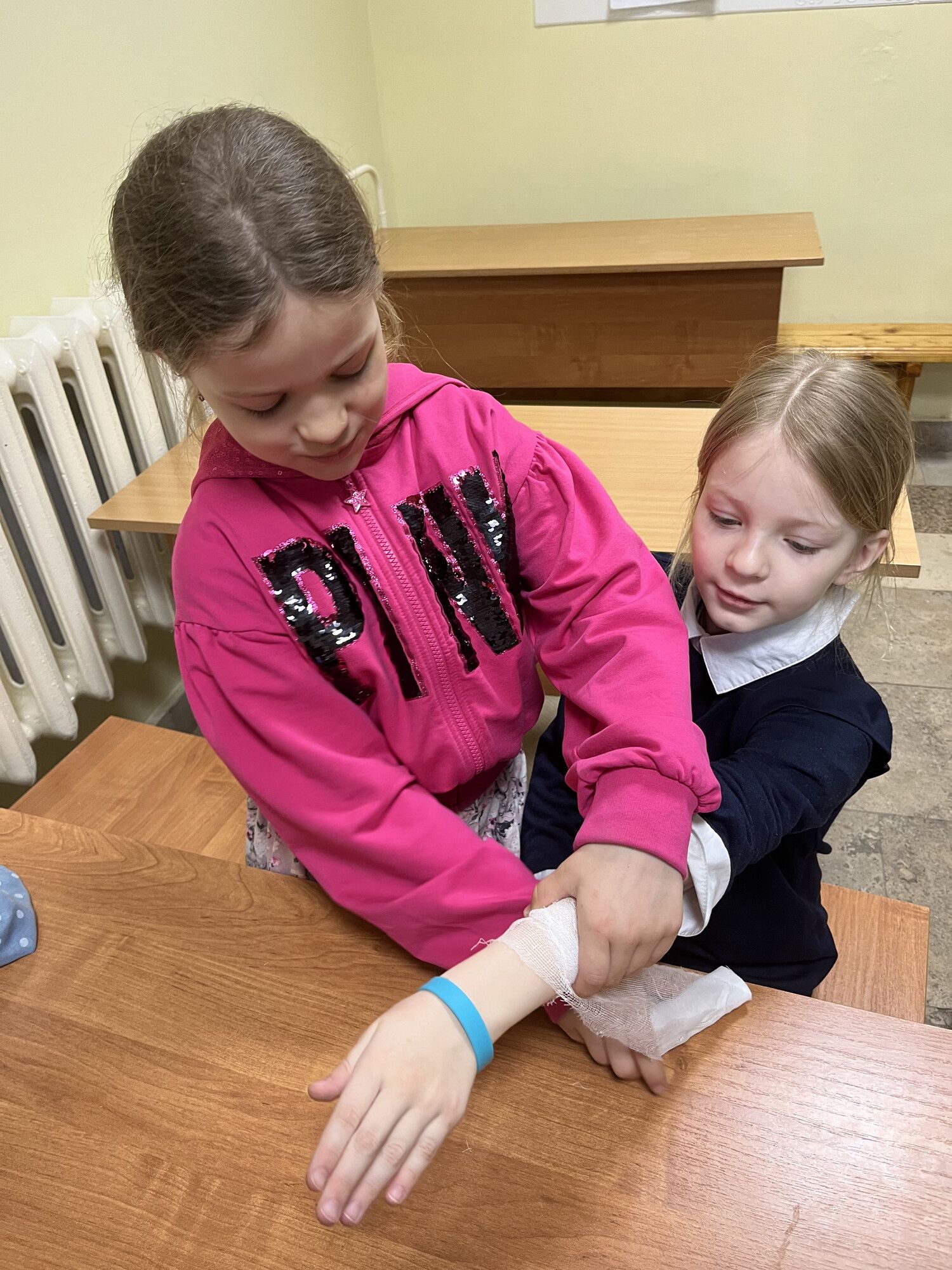 В ходе обучающего мероприятия была проведена беседа о том, как важно уметь предпринять меры по оказанию первой помощи. Ребята ознакомились с номерами телефонов спасательных служб и с тем, как правильно ими пользоваться. Елизавета продемонстрировала приёмы сердечно-лёгочной реанимации и показала, как останавливать кровотечение. По окончании мероприятия ребята научились самостоятельно накладывать повязки на раны и почувствовали себя настоящими медицинскими работниками и сотрудниками ведомства по чрезвычайным ситуациям.