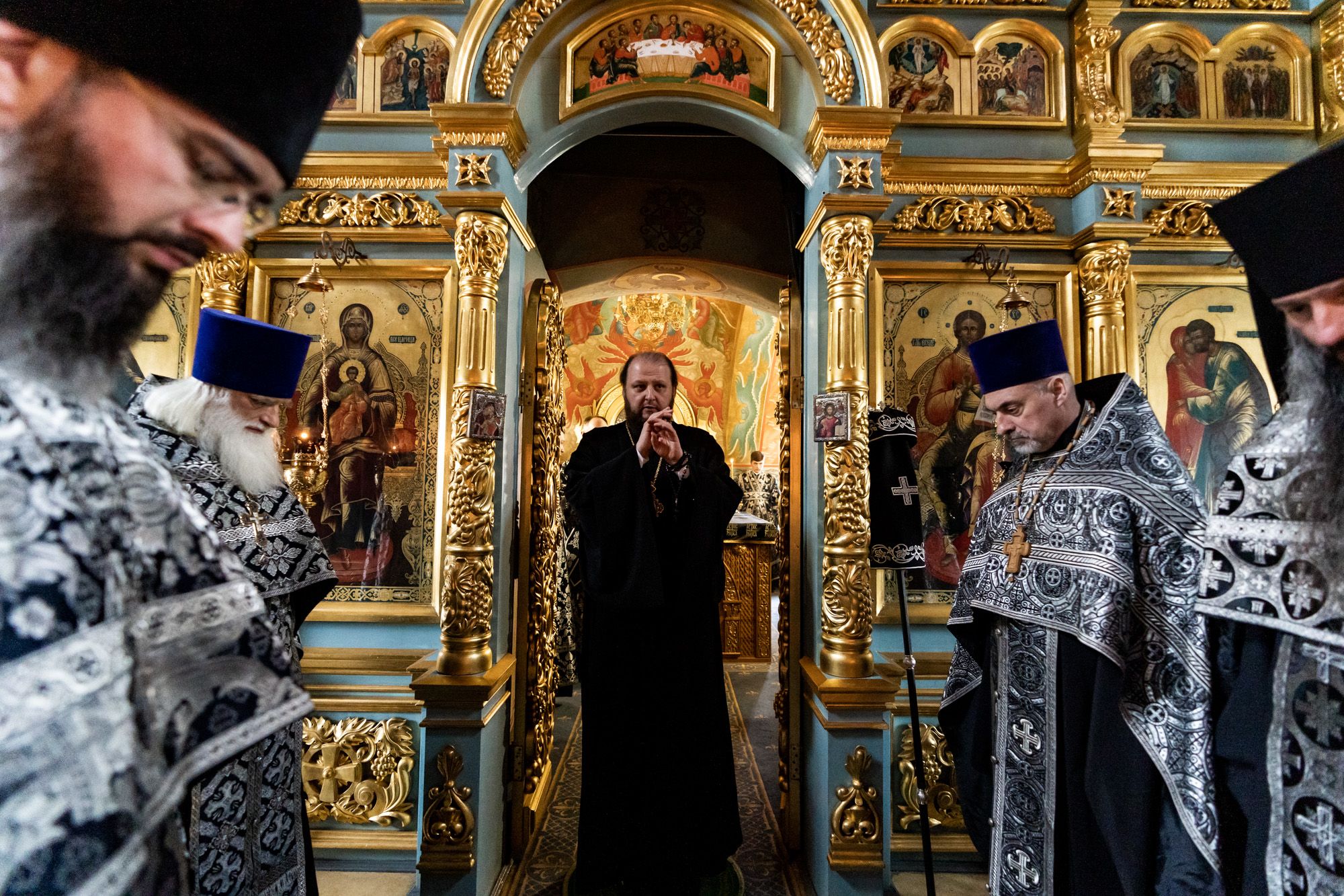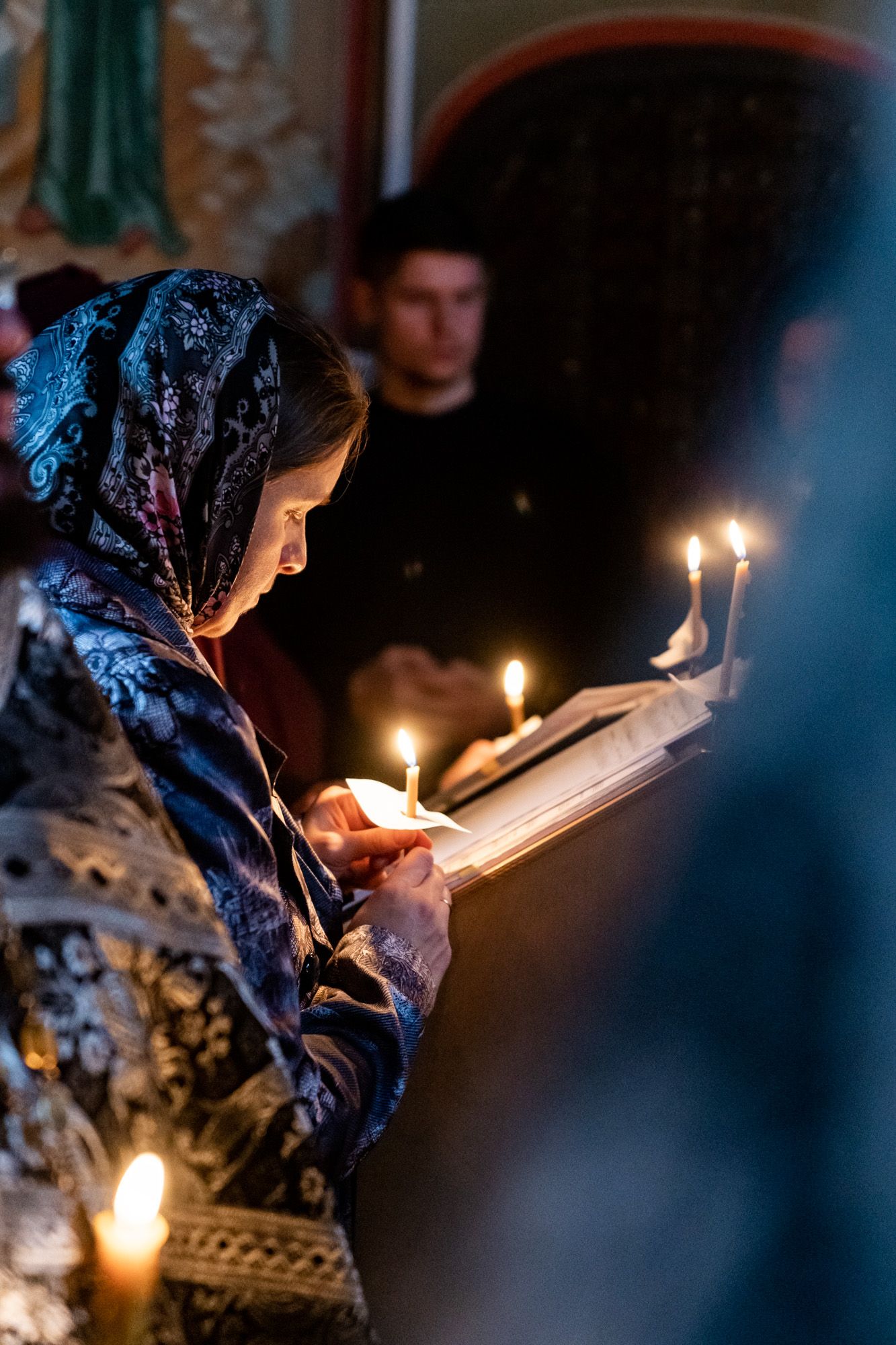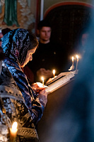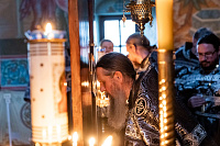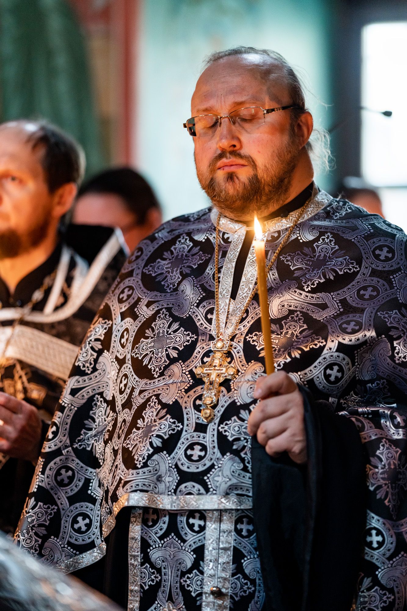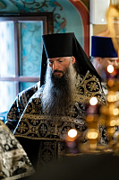14 апреля вечером архиепископ Подольский и Люберецкий Аксий совершил вечерню с чтением акафиста Страстям Христовым в Зачатьевском храме города Чехова.