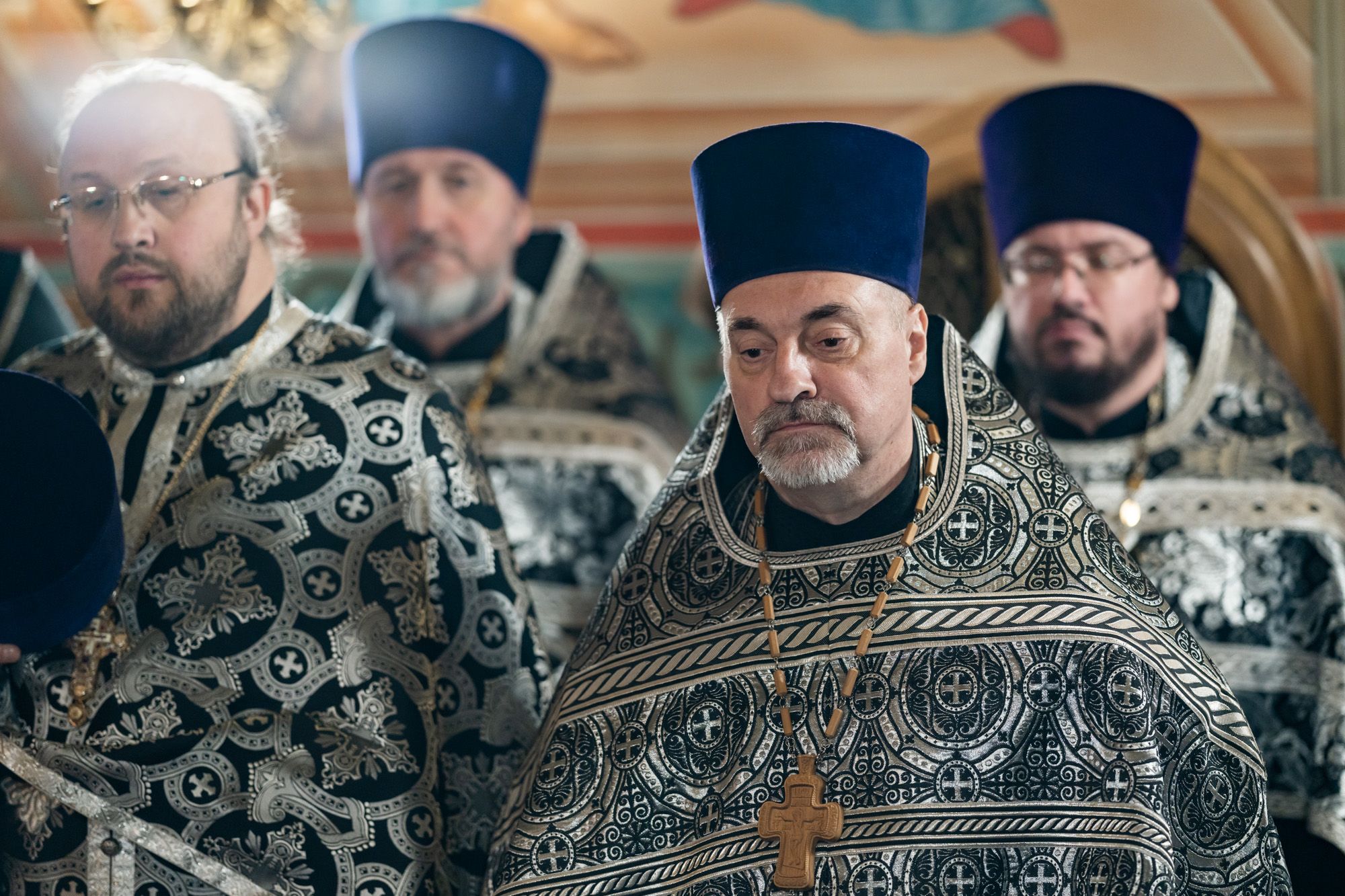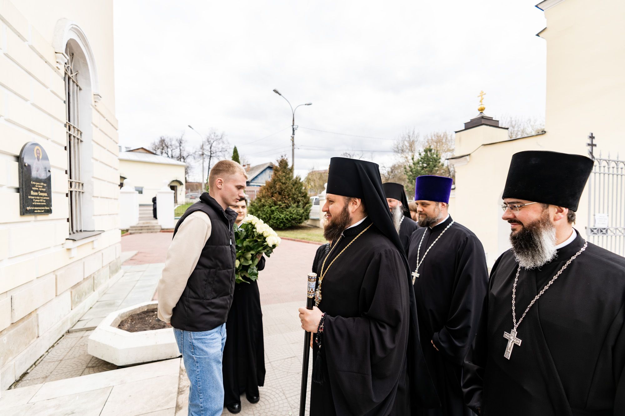 Его Высокопреосвященству сослужили: благочинный Чеховского церковного округа, настоятель храма иерей Константин Александров, игумен Вознесенской Давидовой пустыни Сергий (Куксов), духовенство Чеховского благочиния.