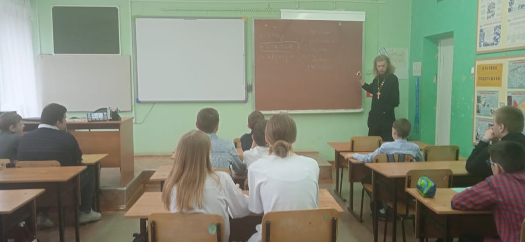 В ходе посещения отец Димитрий встретился с учащимися 5 и 6 классов, ответил на вопросы ребят и рассказал им о Православии и духовной жизни.