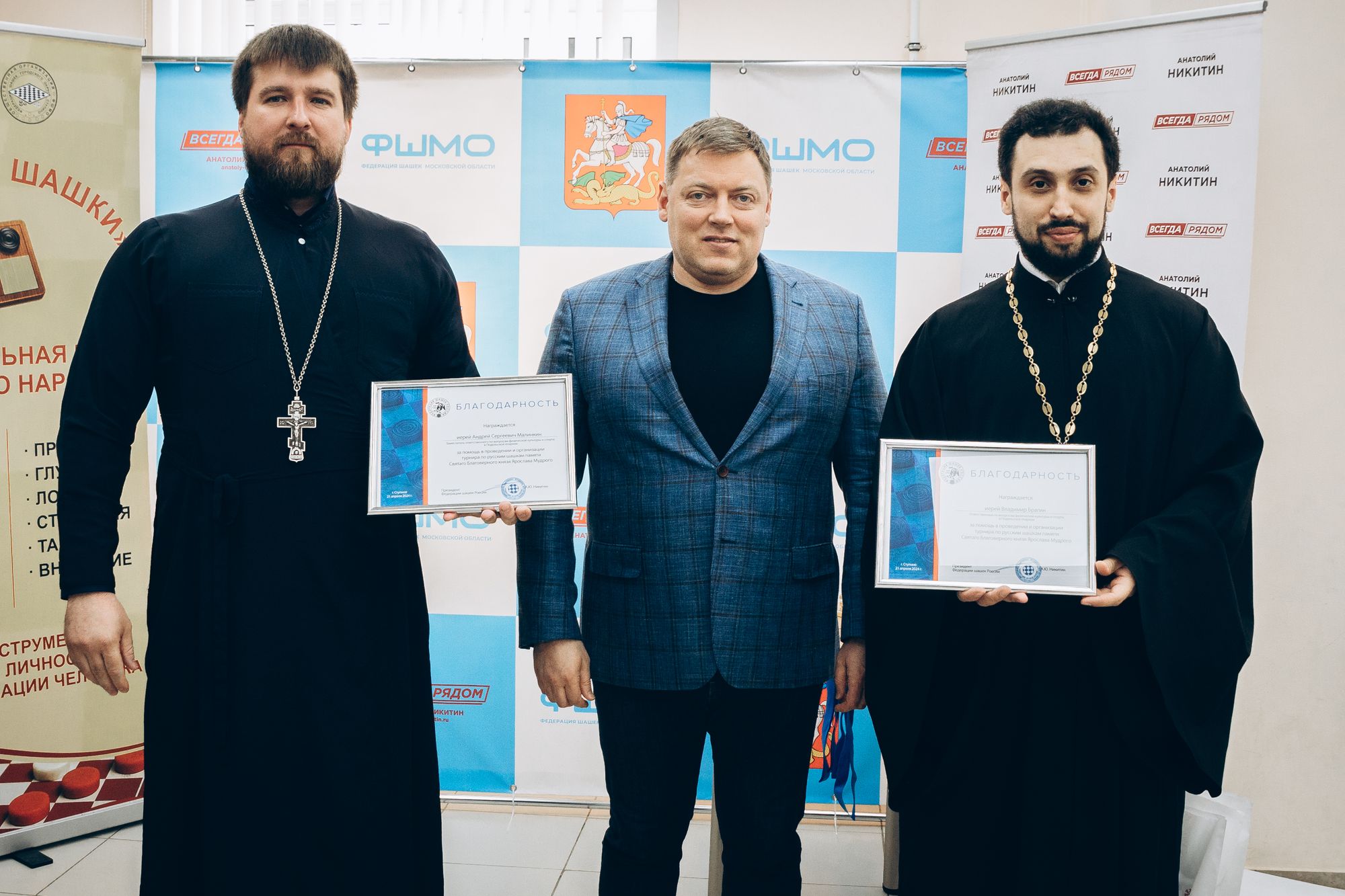 С приветственным словом к собравшимся обратились: президент Федерации шашек России А.Ю. Никитин, представитель Федерации С.А. Ушакова, председатель Комиссии по вопросам физической культуры и спорта Подольской епархии иерей Владимир Брагин, заместитель председателя Комиссии иерей Андрей Малинкин.