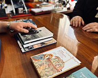 Отец Александр преподнёс в дар Владимиру Евгеньевичу новые книги Святейшего Патриарха Московского и всея Руси Кирилла.