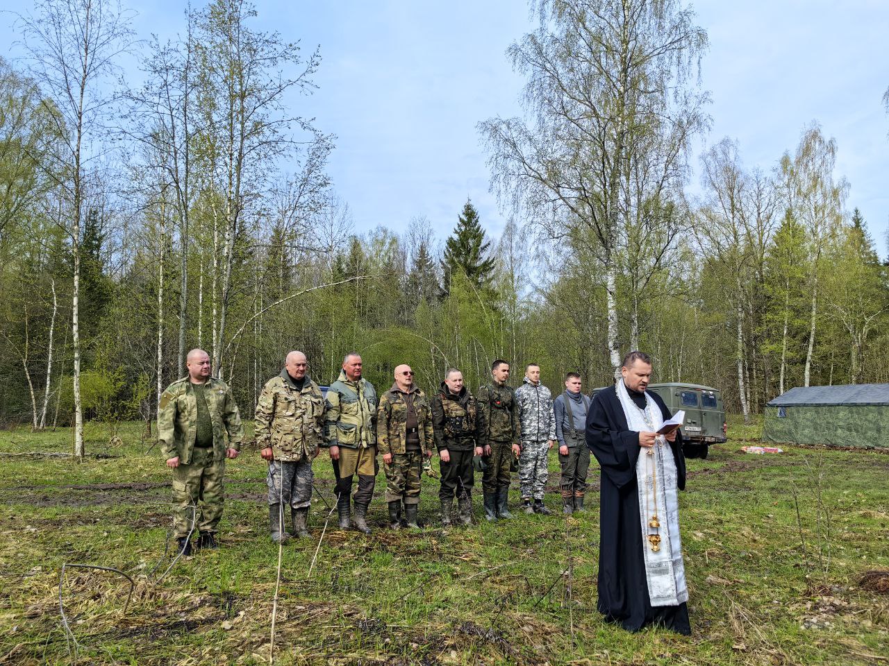 С 22 по 25 апреля председатель Межъепархиального отдела по координации миссионерской и молодежной работы Московской митрополии, духовник поискового отряда «Дружина-Подольск» иерей Алексий Суриков посетил поисковый лагерь, расположенный близ села Залучье Старорусского района Новгородской области и совершил для поисковиков молебеное пение перед началом весеннего этапа Международной Вахты памяти 2024 года.