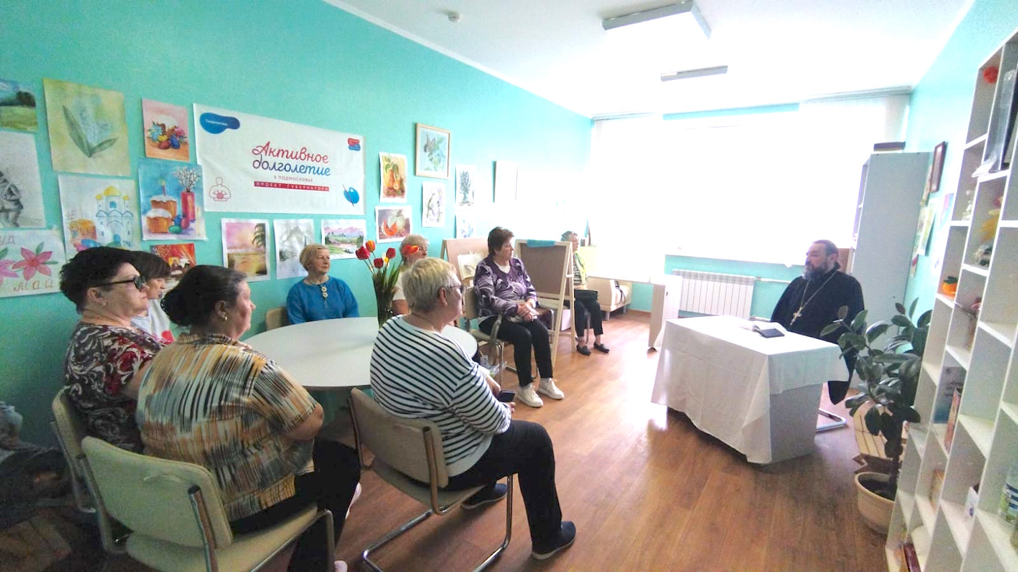 В ходе посещения отец Константин провел тематическую беседу «Страстная неделя. Последние дни земной жизни Иисуса Христа» с участниками клуба «Активное долголетие».