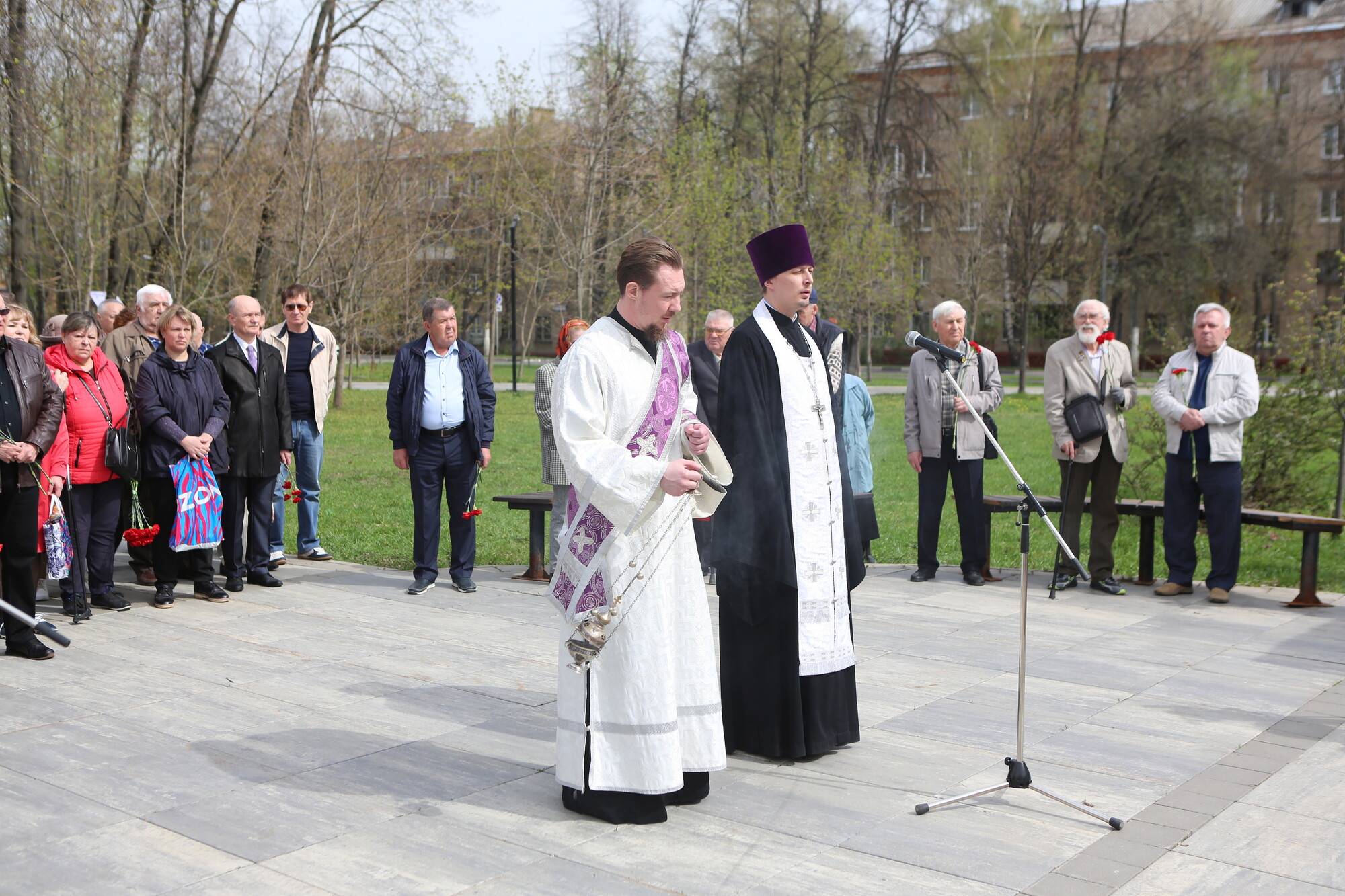 В сквере у памятного мемориала память ликвидаторов почтили члены Долгопрудненского отделения общественной организации Союз «Чернобыль» России, представители администрации, духовенства, городские депутаты. Клирик храма Преображения Господня священник Иоанн Слобжин совершил панихиду по жертвам техногенных катастроф и обратился к собравшимся с пастырским словом.