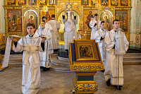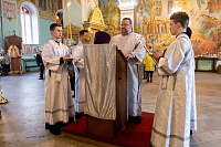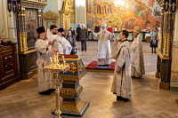 Богослужебные песнопения исполнил соборный хор под управлением Натальи Камышниковой.